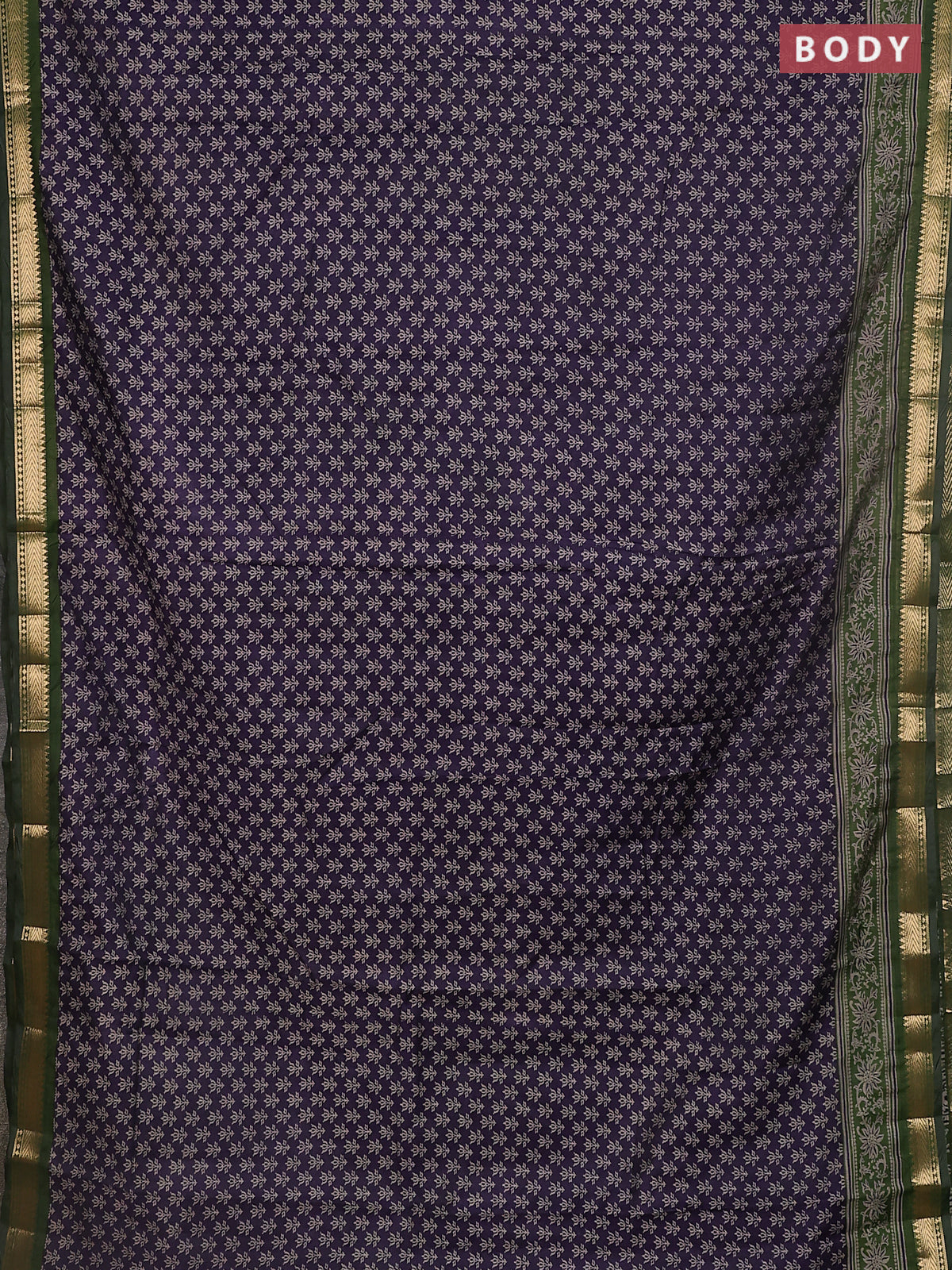 Maheshwari cotton saree navy blue and sap green with allover prints and zari woven border
