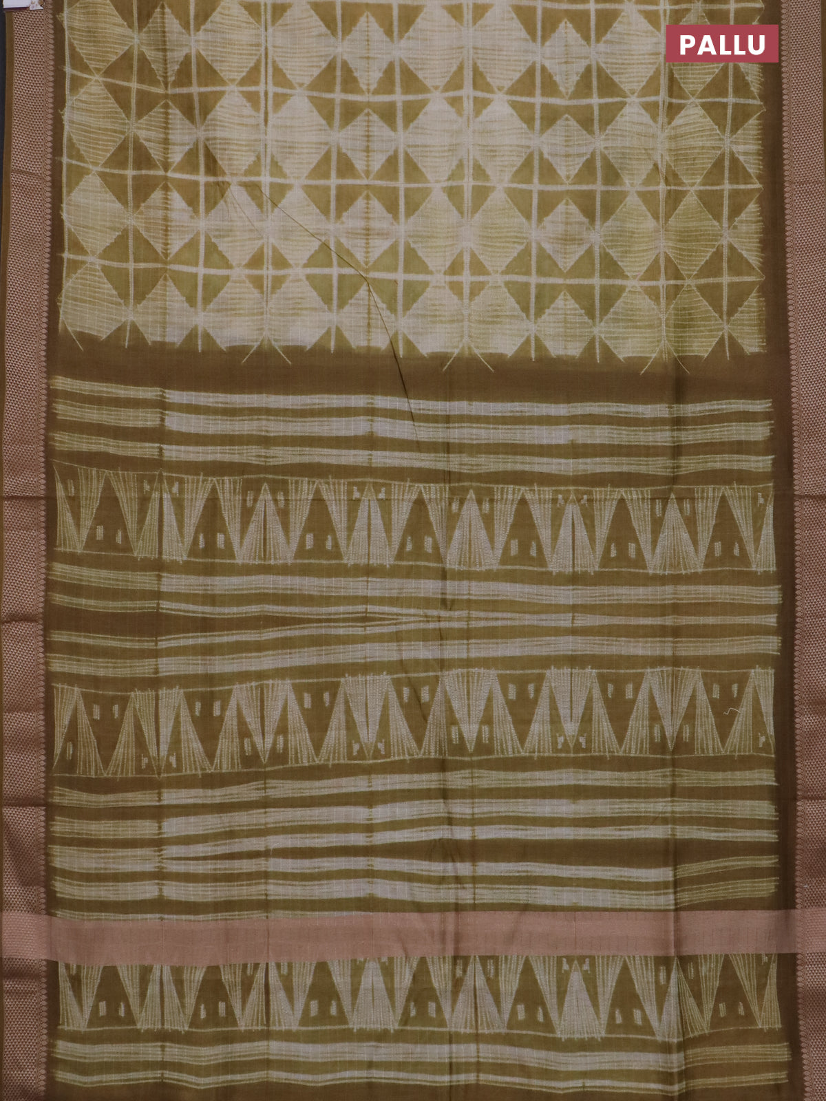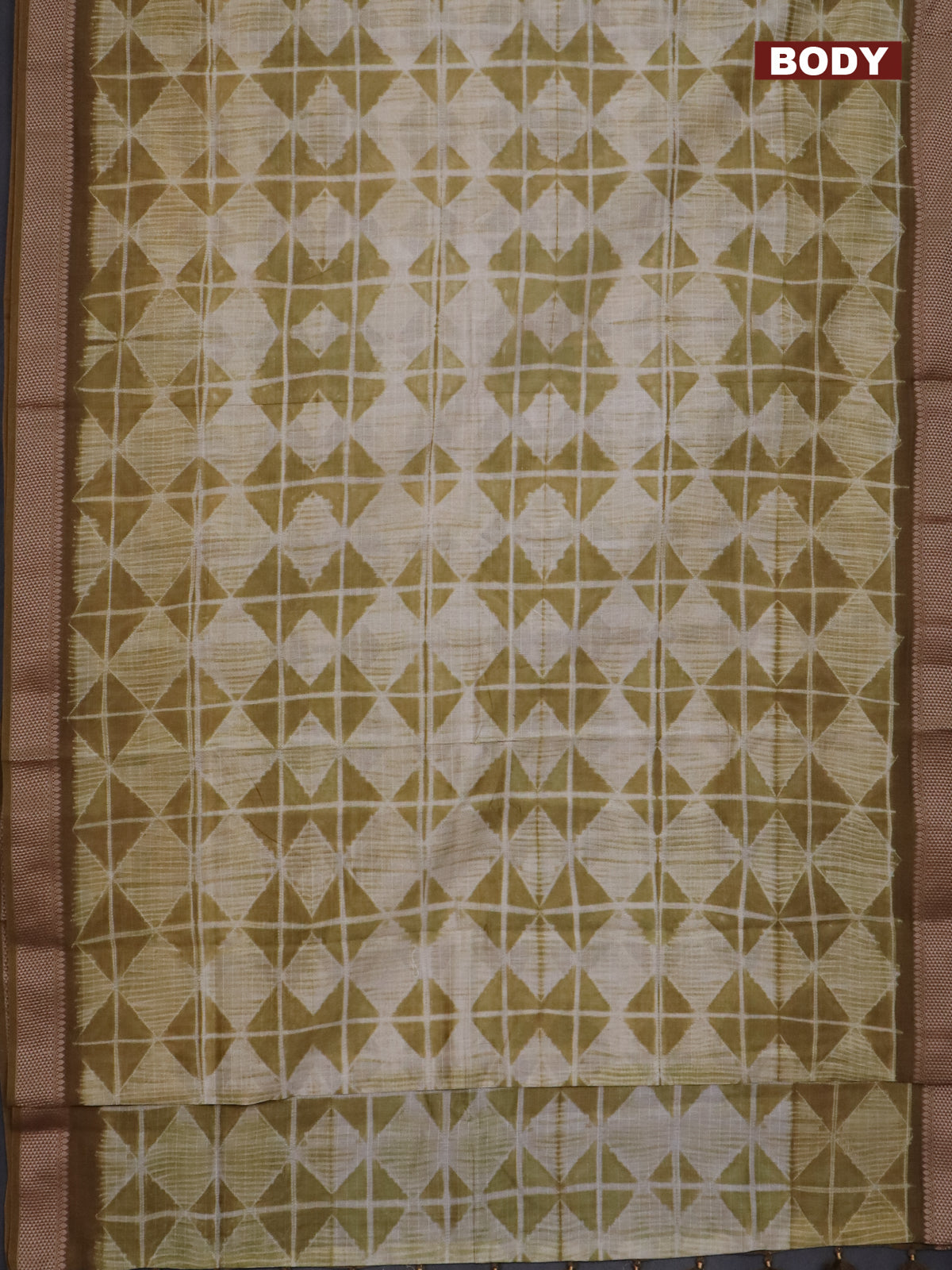 Maheshwari silk cotton saree dark sandal with allover shibori prints and thread woven border