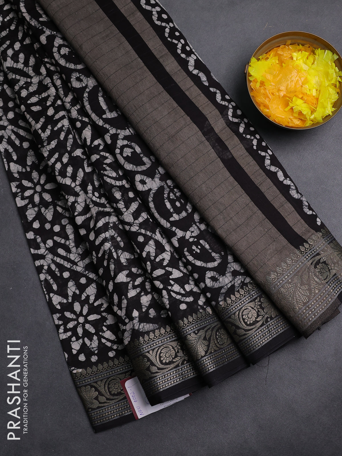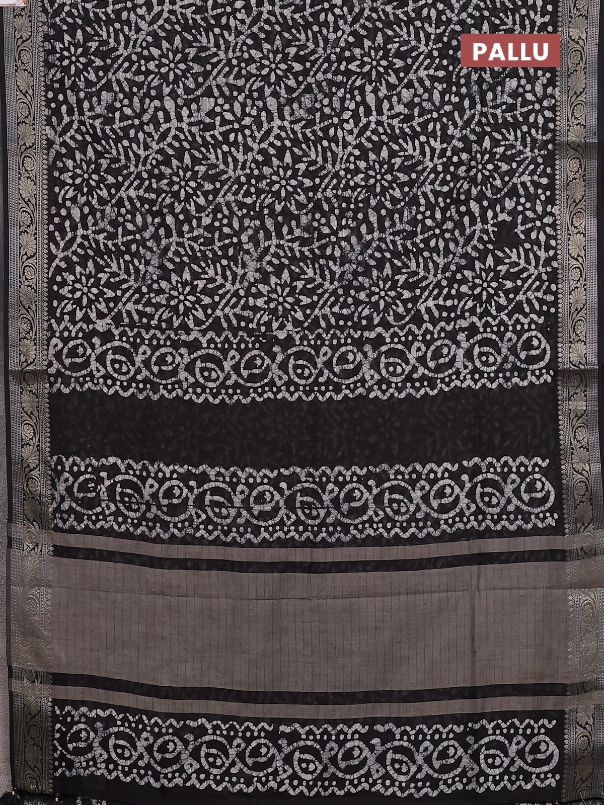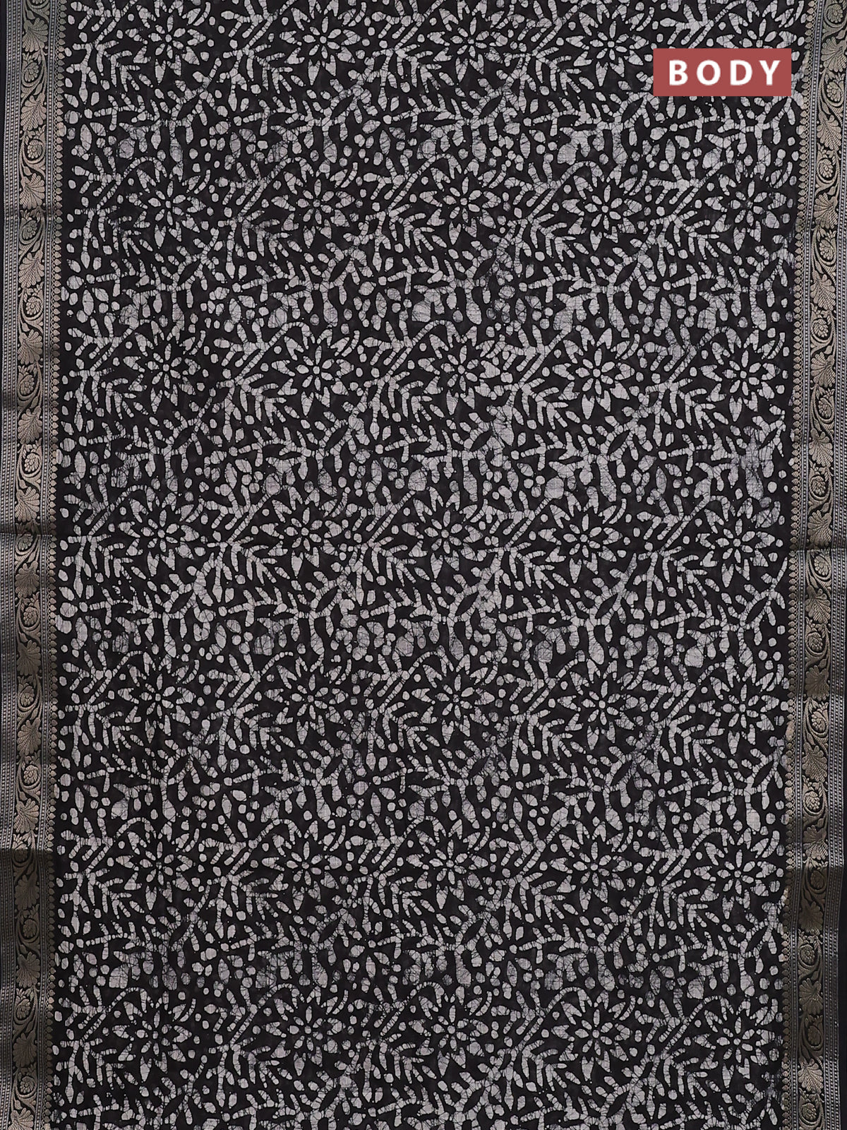 Maheshwari silk cotton saree deep coffee brown with allover batik prints and zari woven border