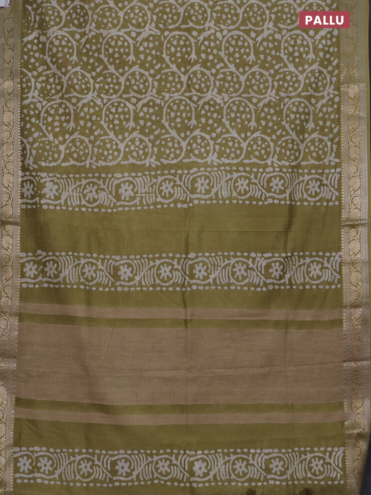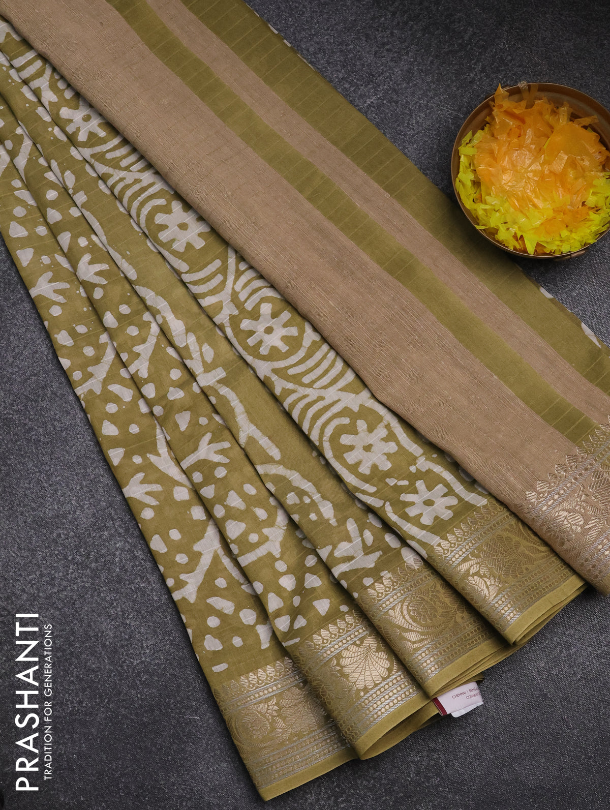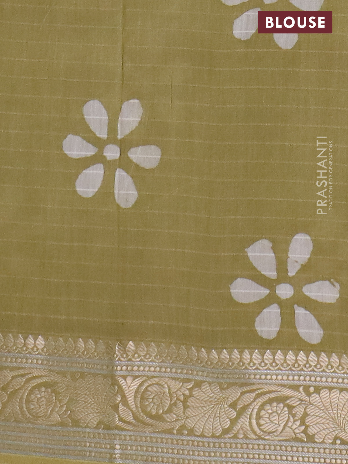 Maheshwari silk cotton saree elaichi green with batik prints and zari woven border
