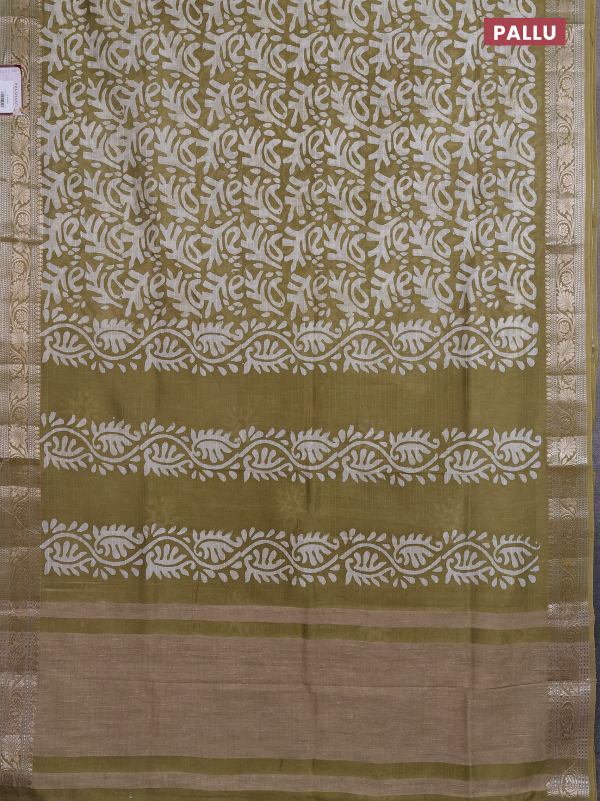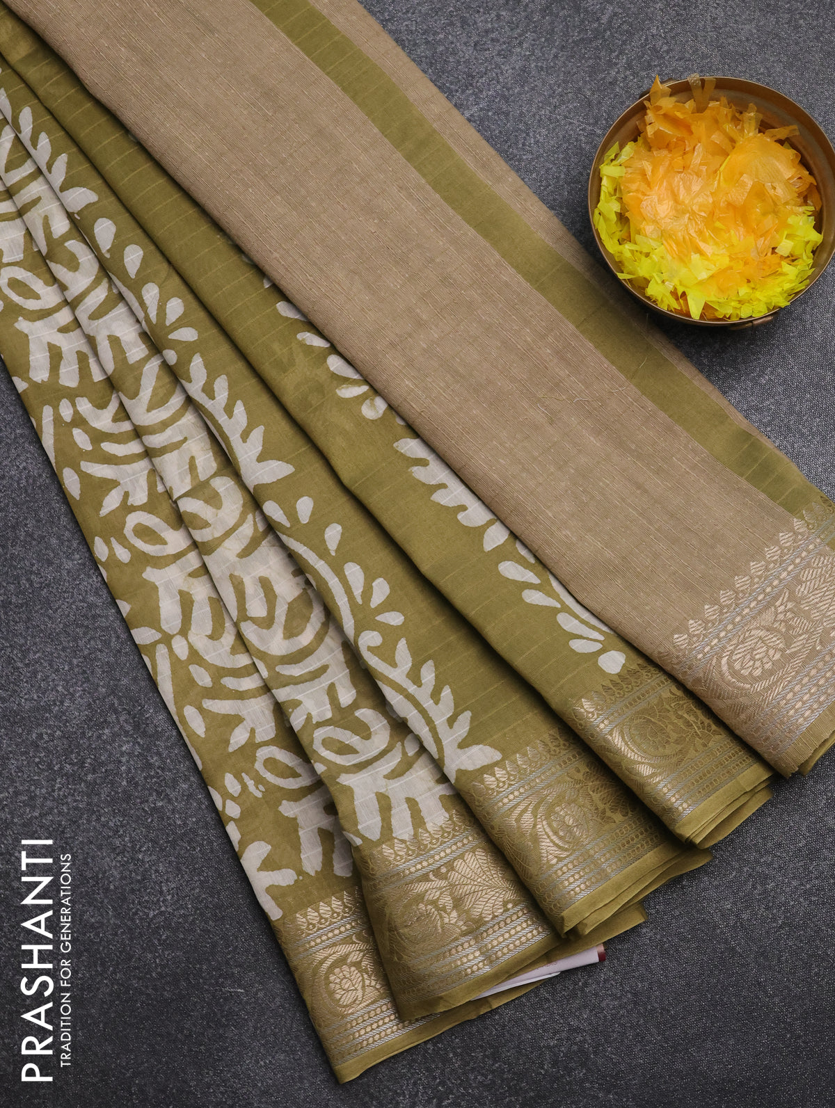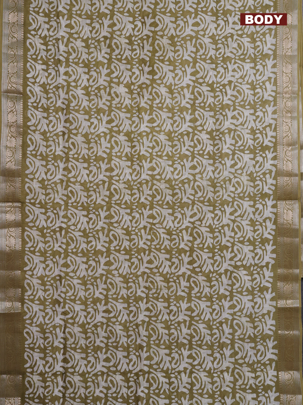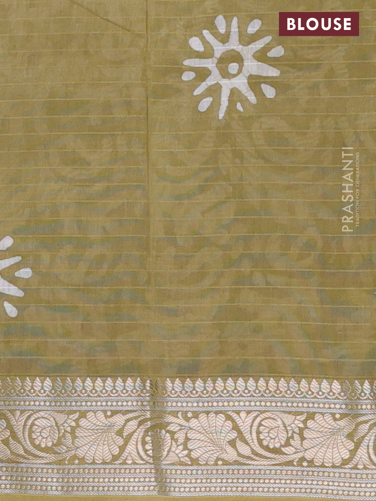 Maheshwari silk cotton saree elaichi green with batik prints and zari woven border