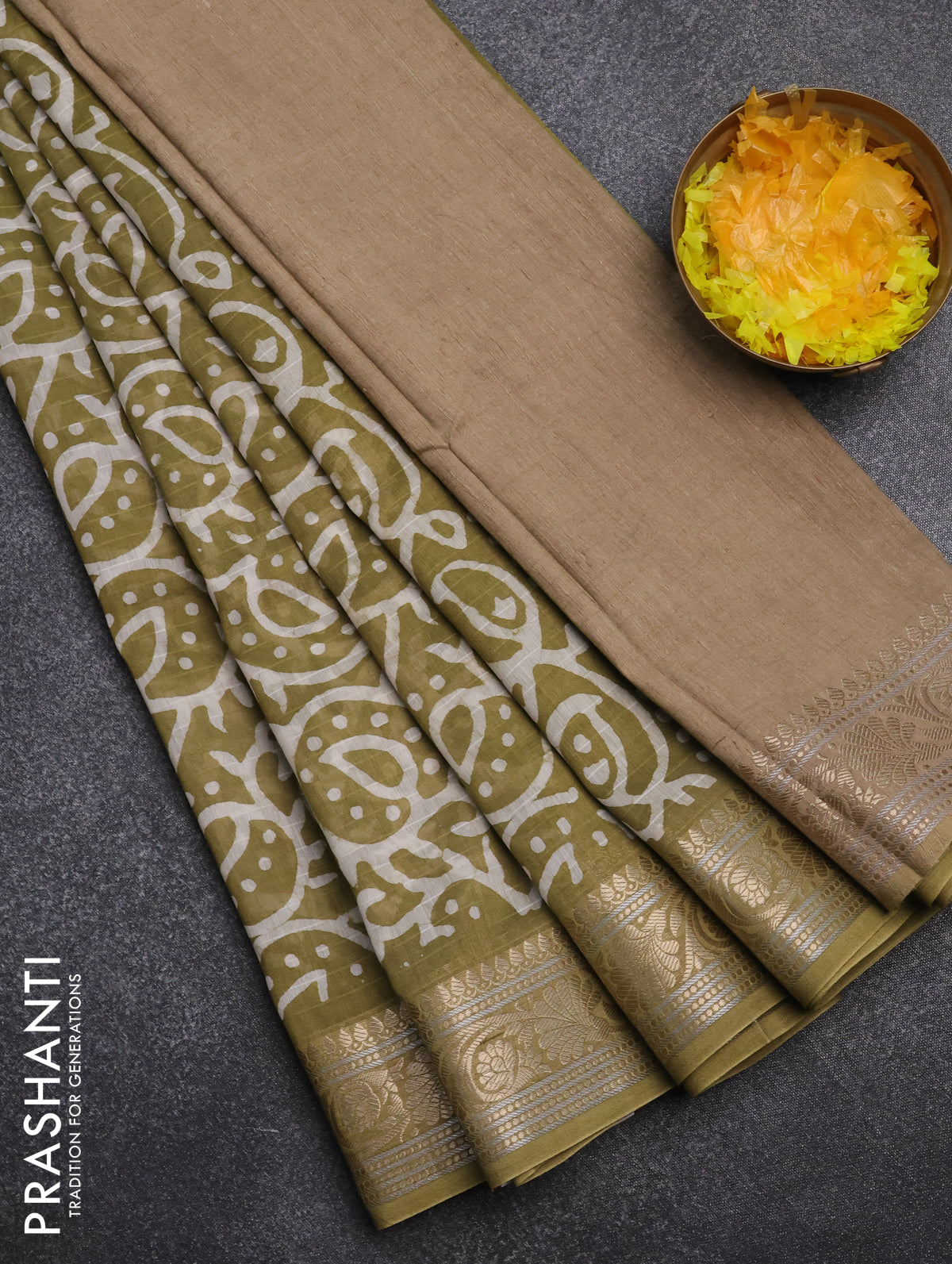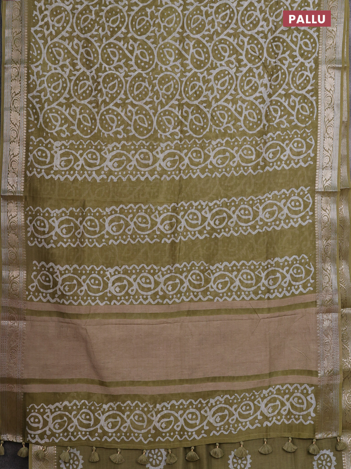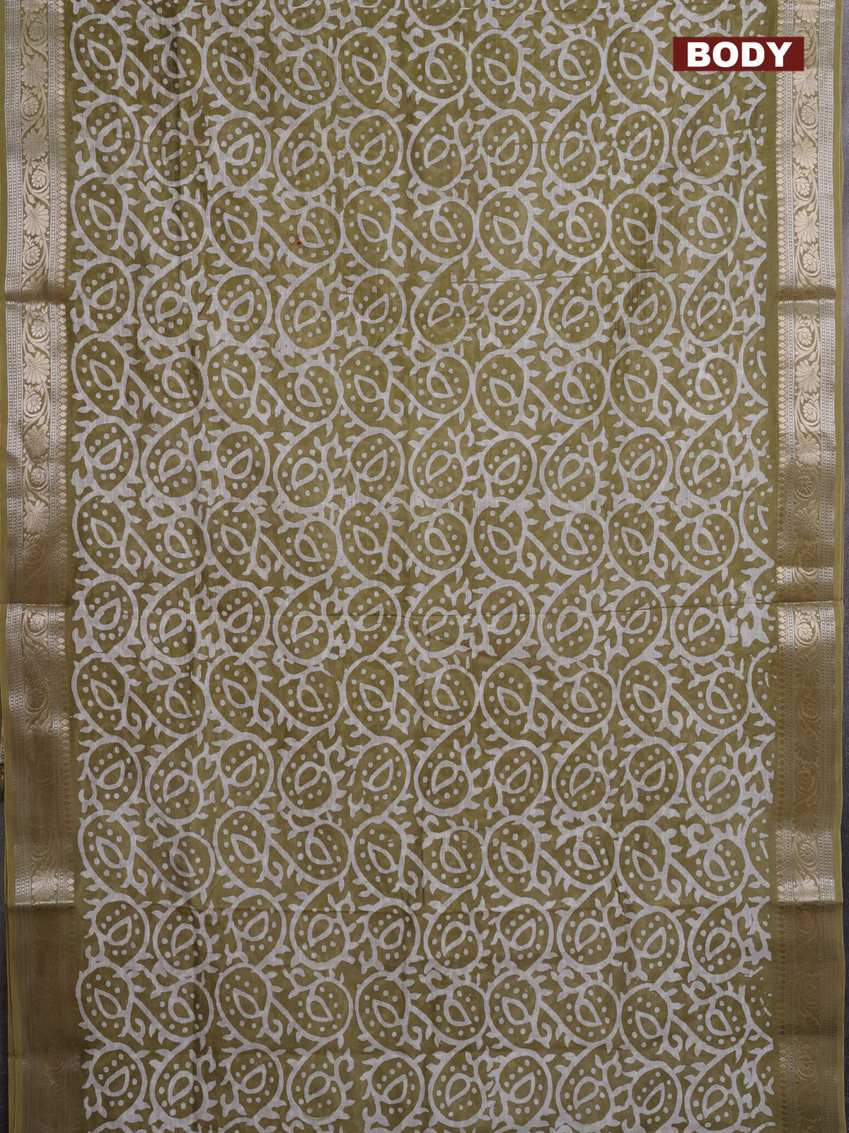 Maheshwari silk cotton saree elaichi green with batik prints and zari woven border