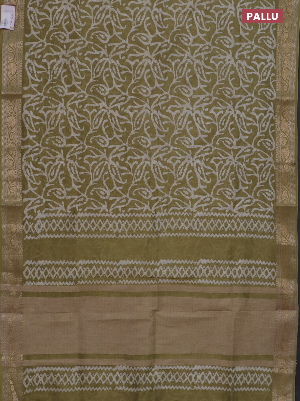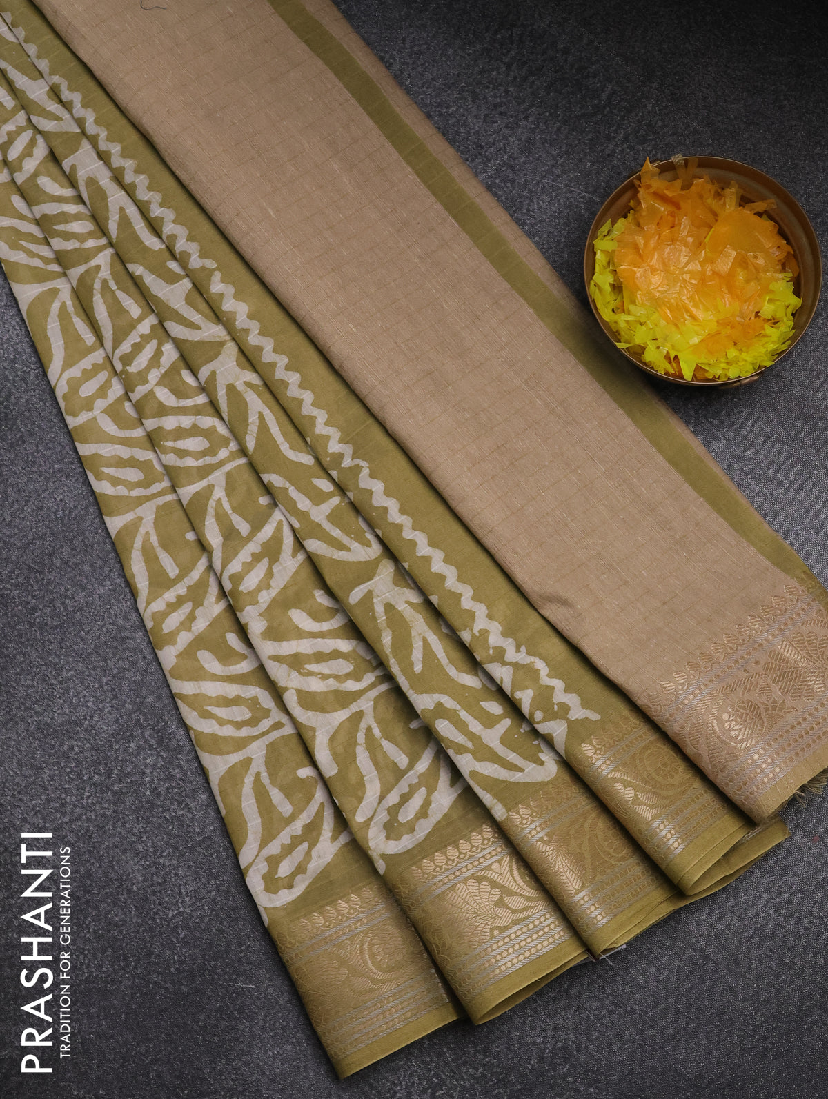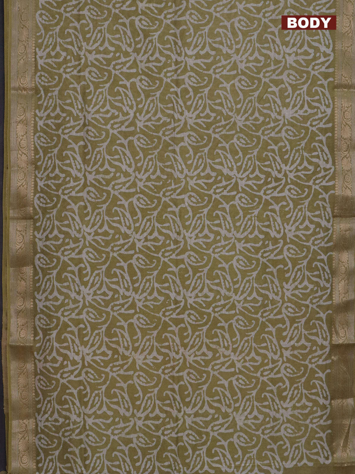 Maheshwari silk cotton saree elaichi green with batik prints and zari woven border