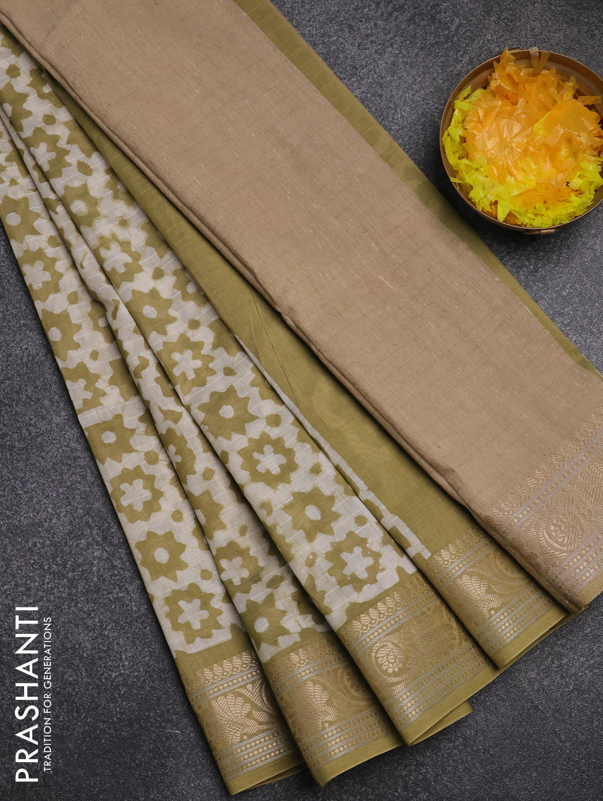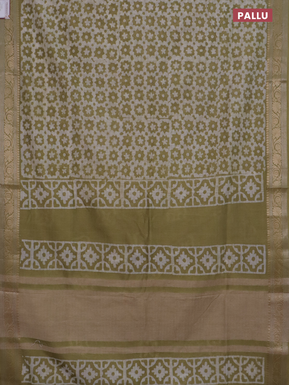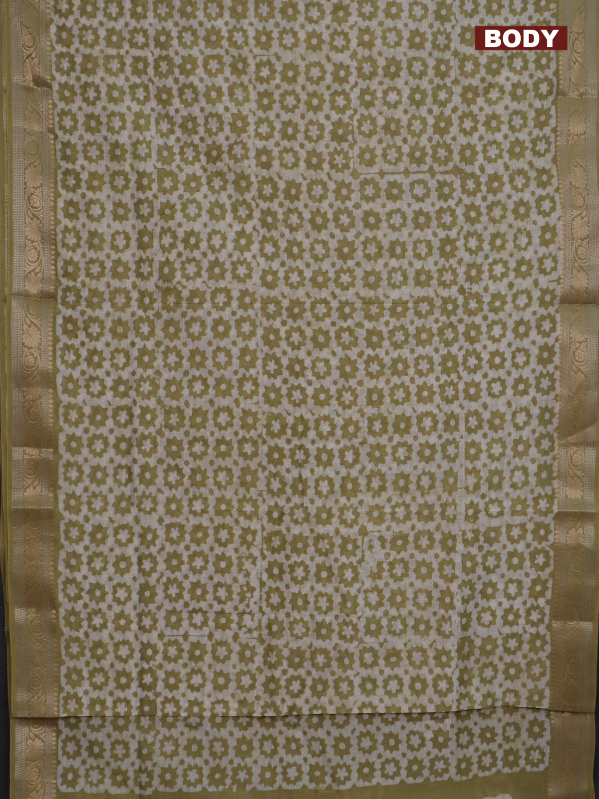 Maheshwari silk cotton saree green shade with batik prints and zari woven border