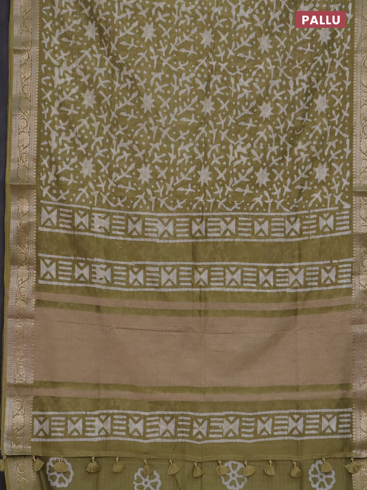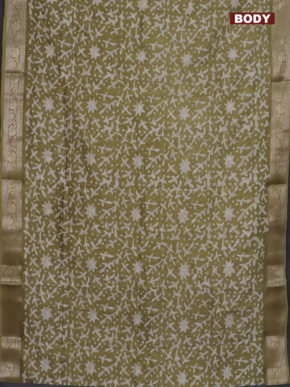 Maheshwari silk cotton saree green shade with batik prints and zari woven border