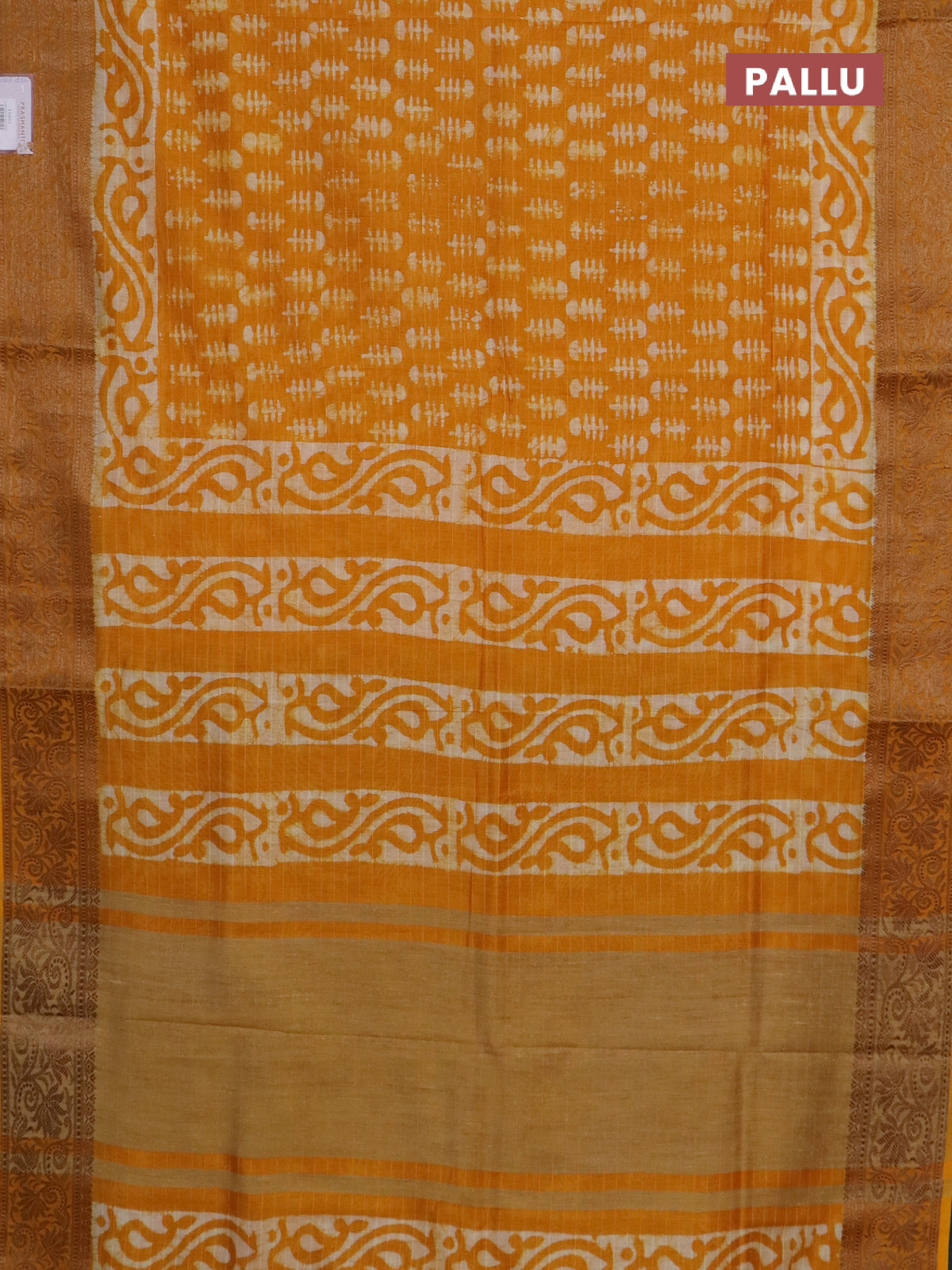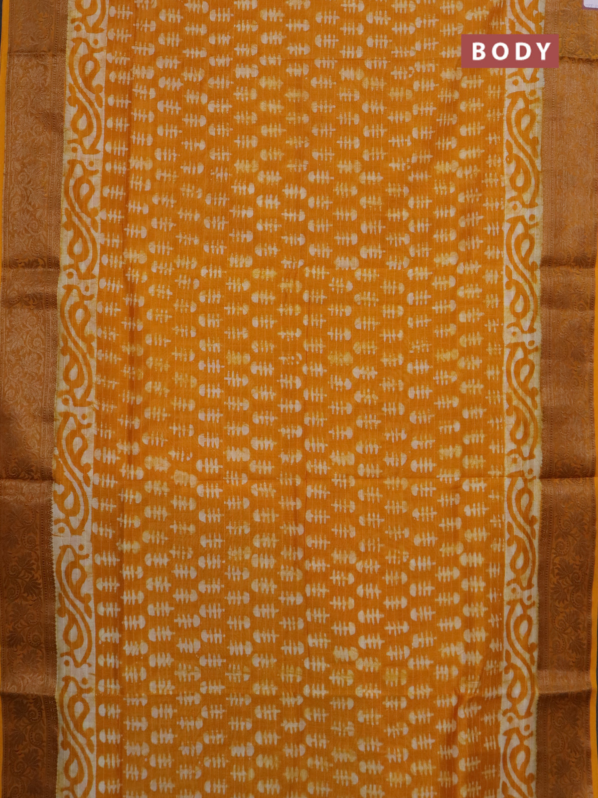Maheshwari silk cotton saree mango yellow with batik prints and zari woven border