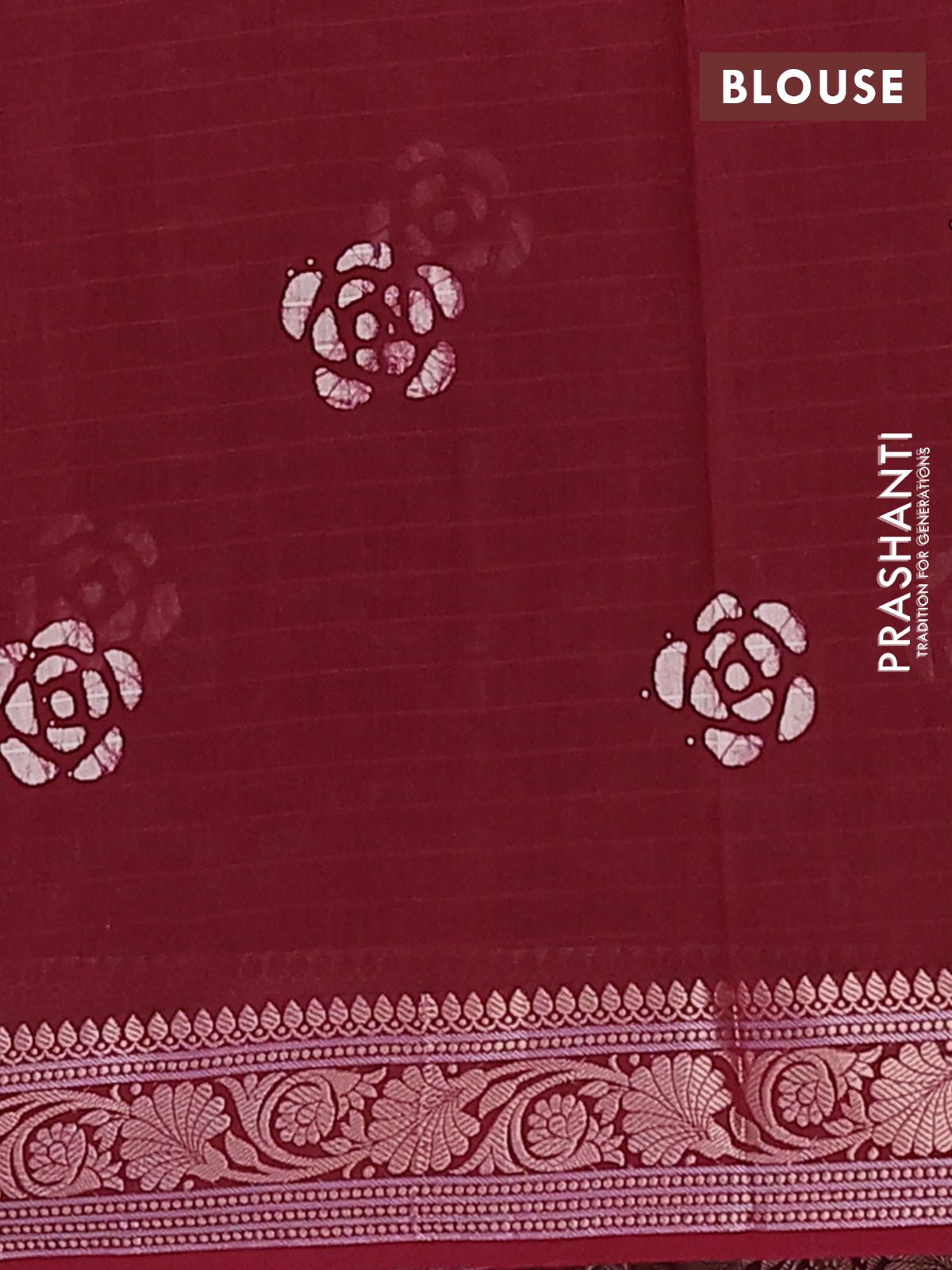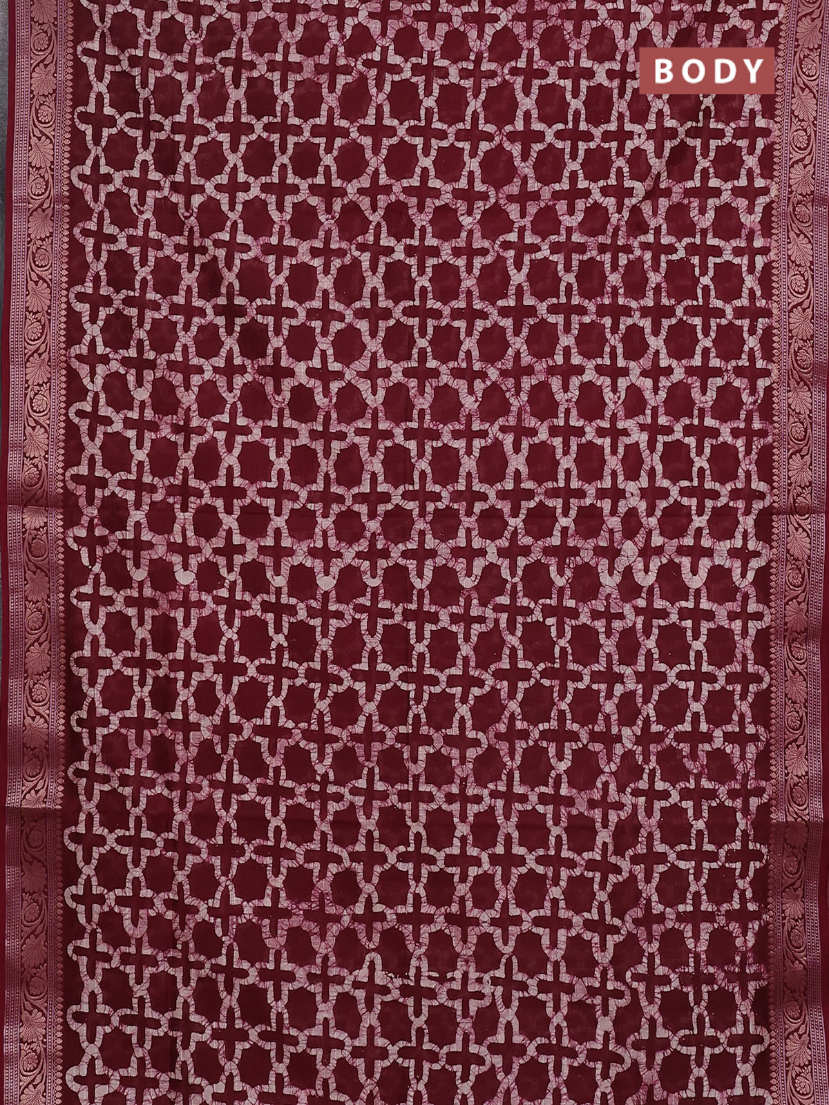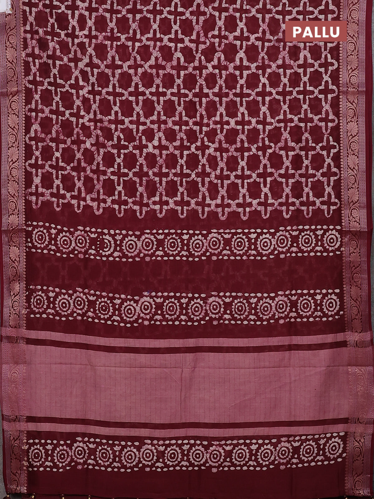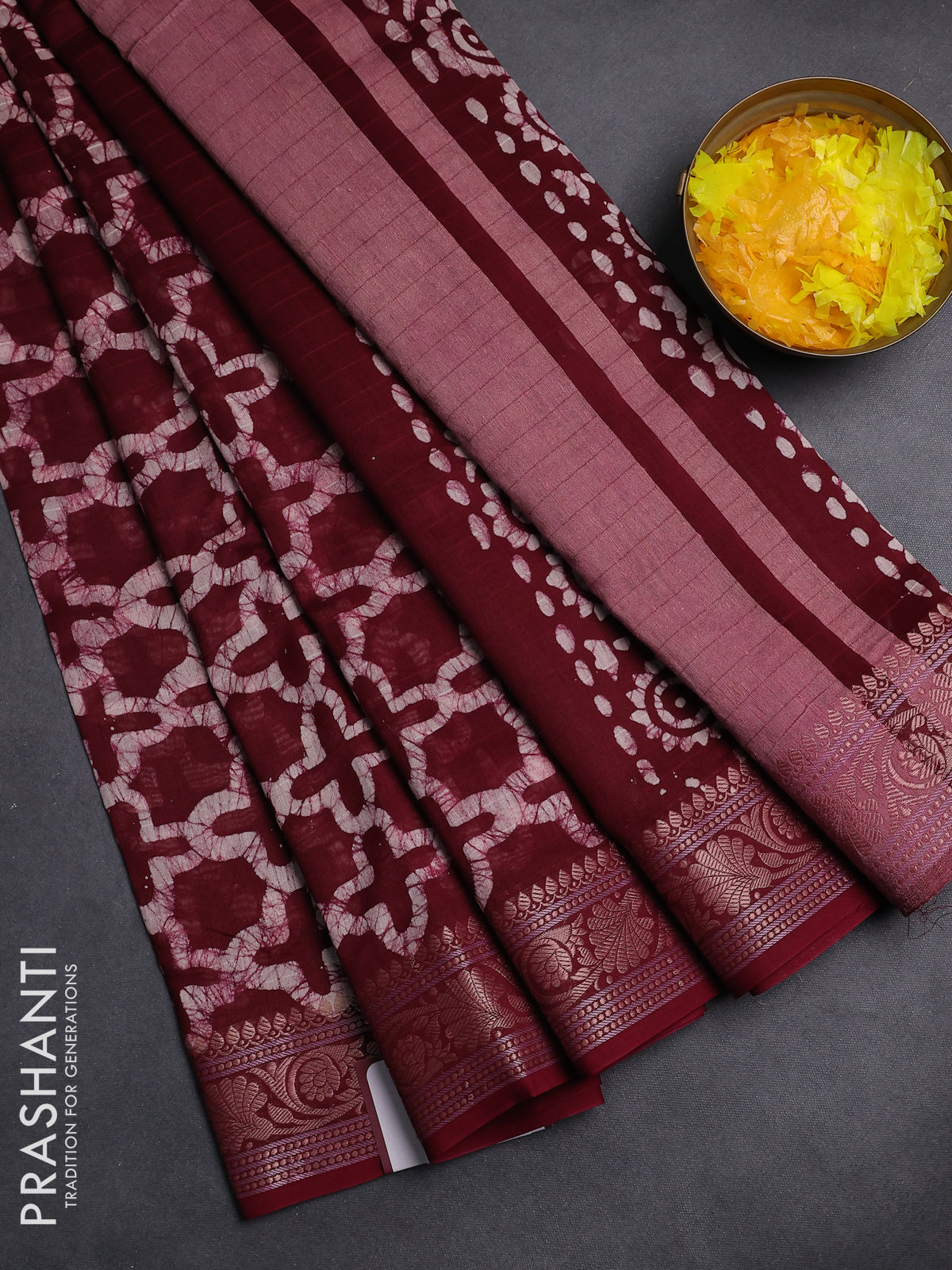 Maheshwari silk cotton saree maroon with allover batik prints and zari woven border