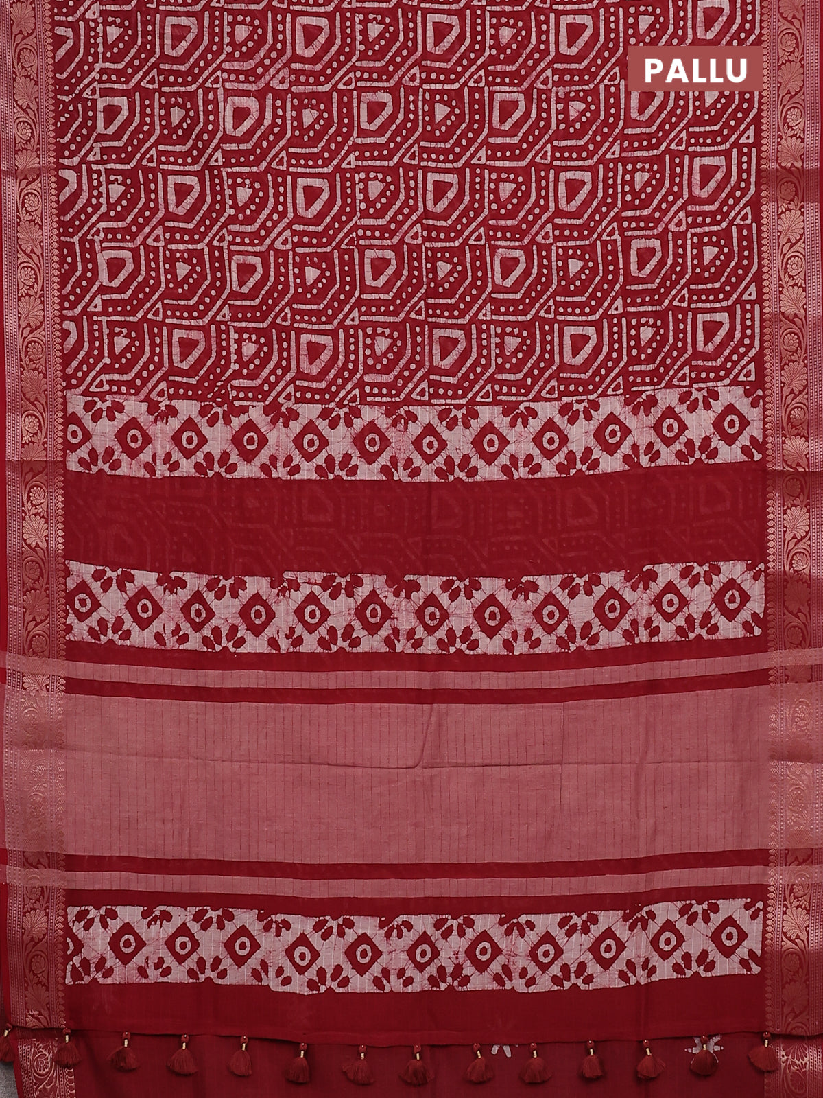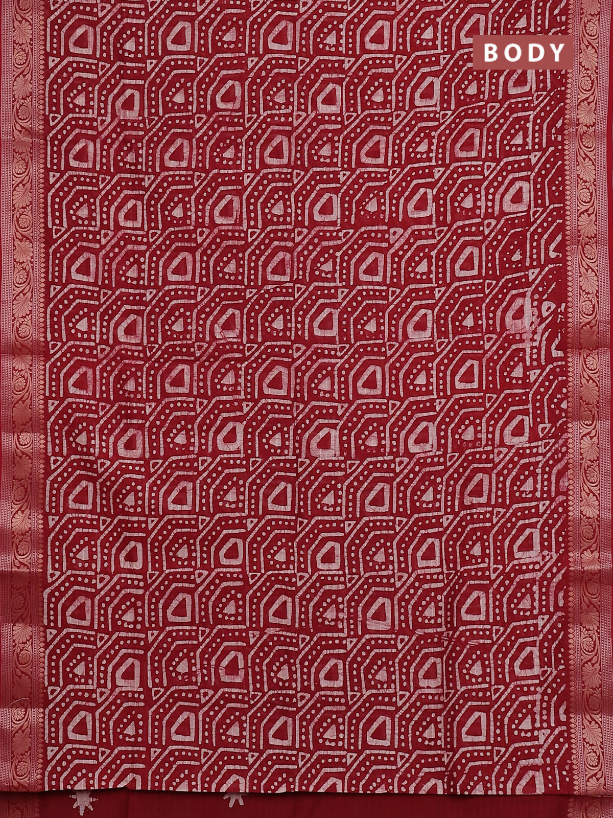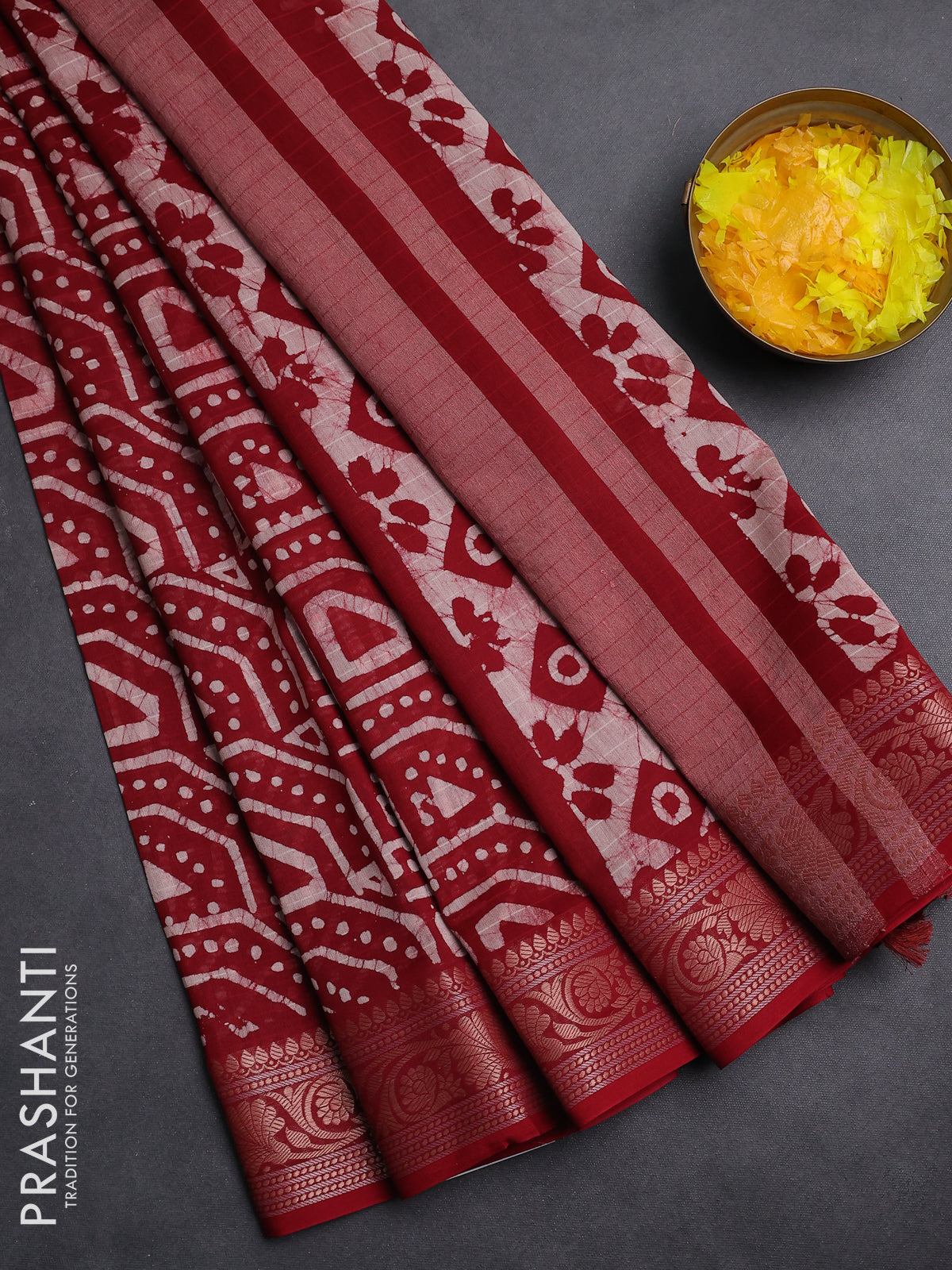 Maheshwari silk cotton saree maroon with allover batik prints and zari woven border