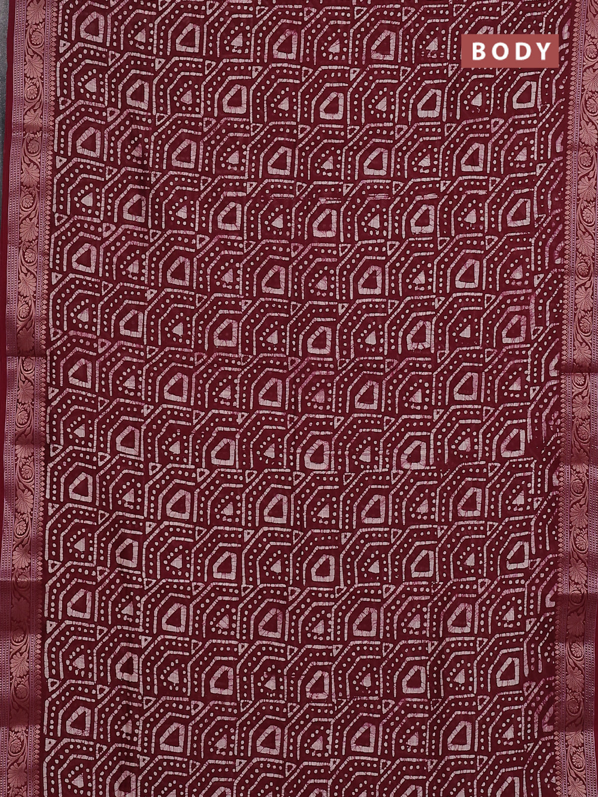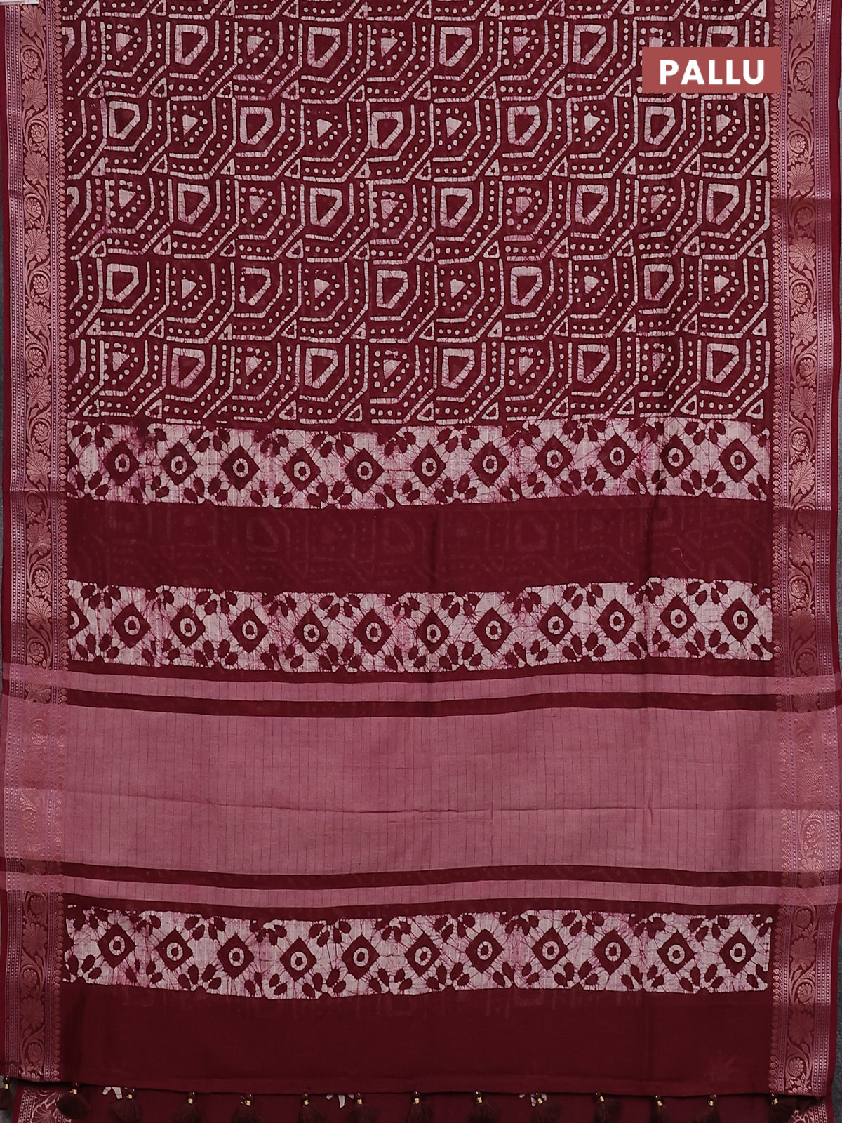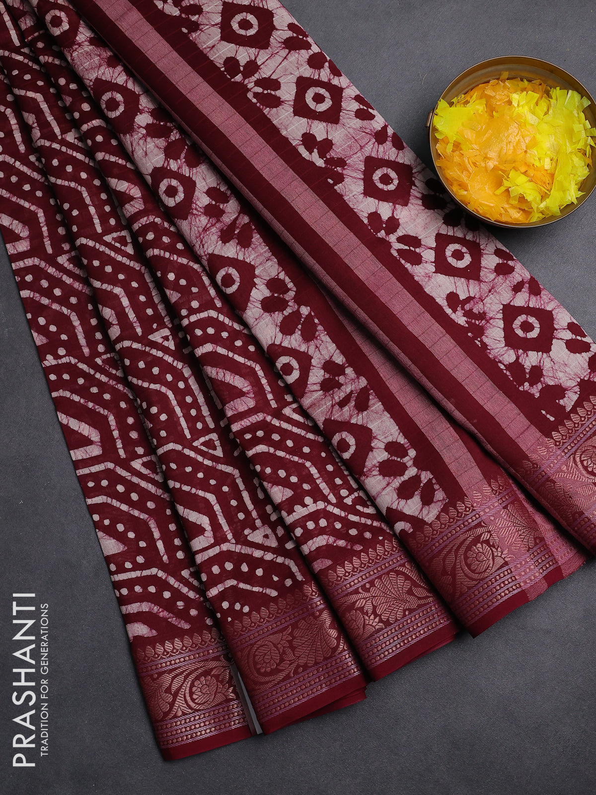 Maheshwari silk cotton saree maroon with allover batik prints and zari woven border