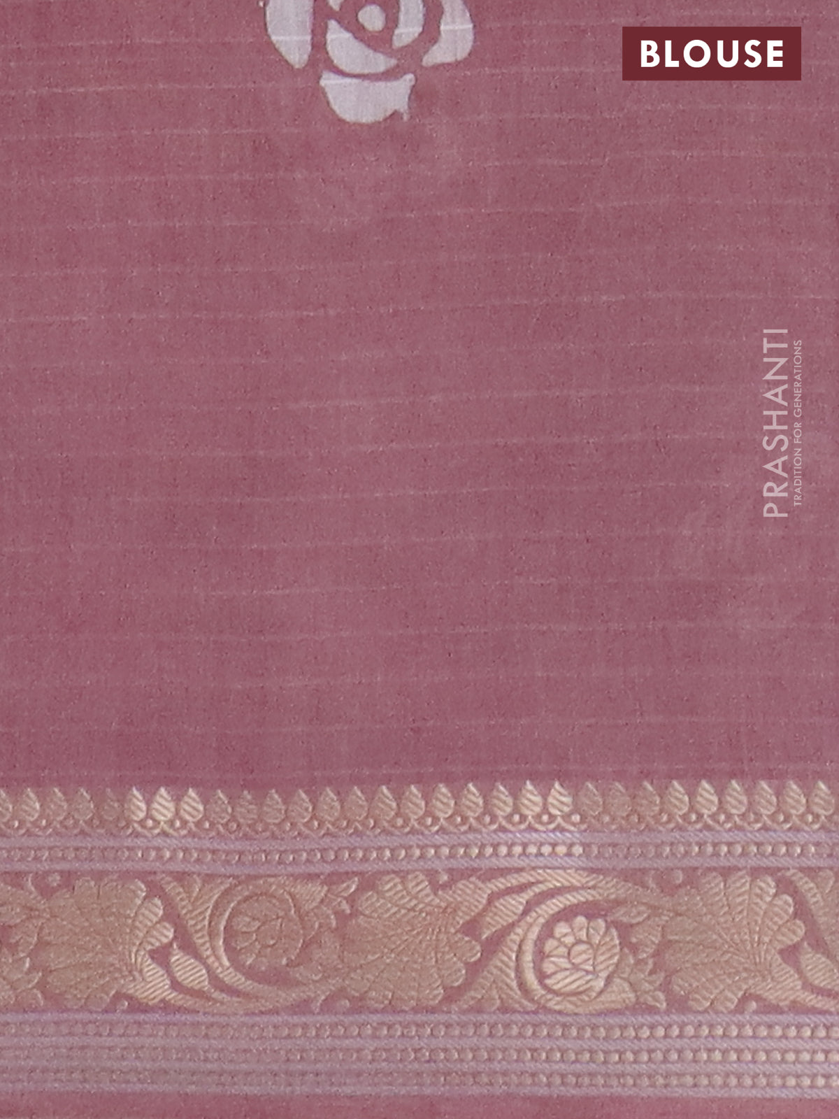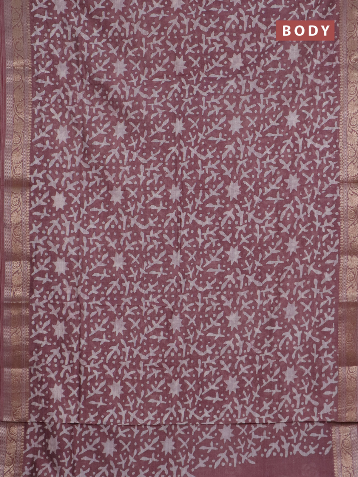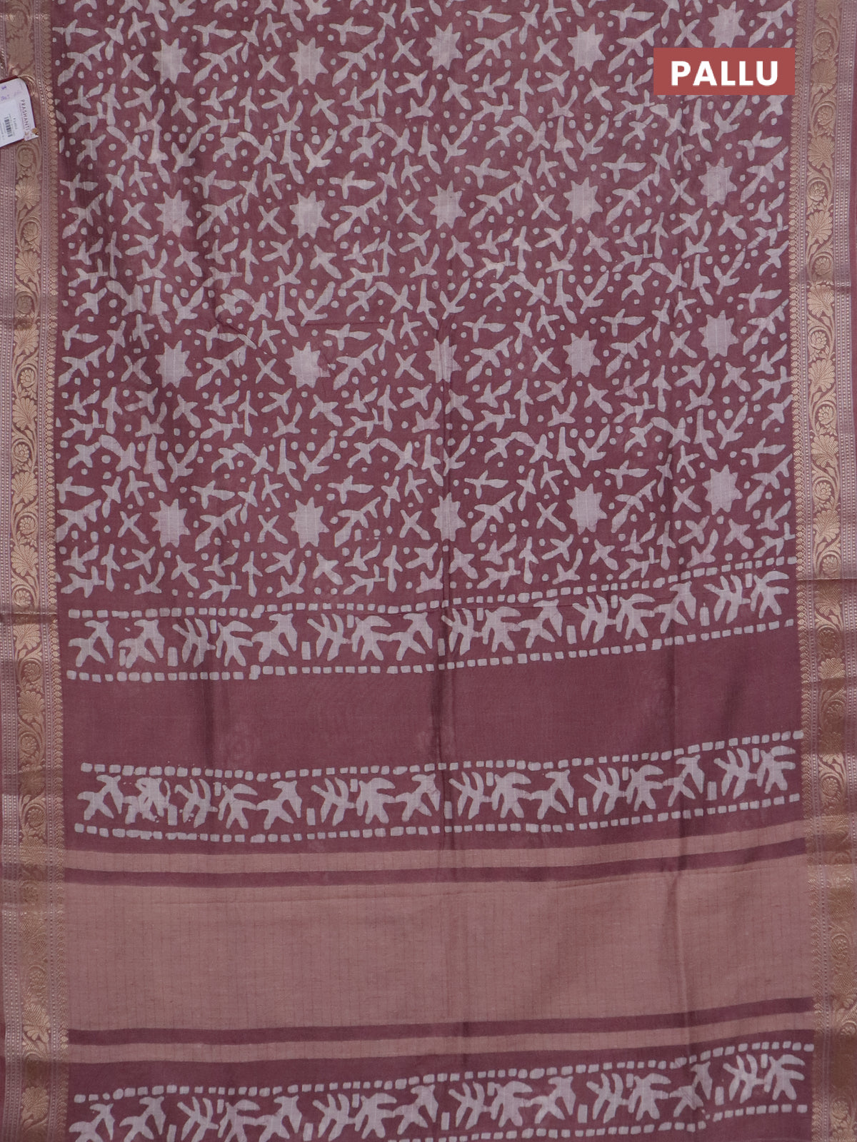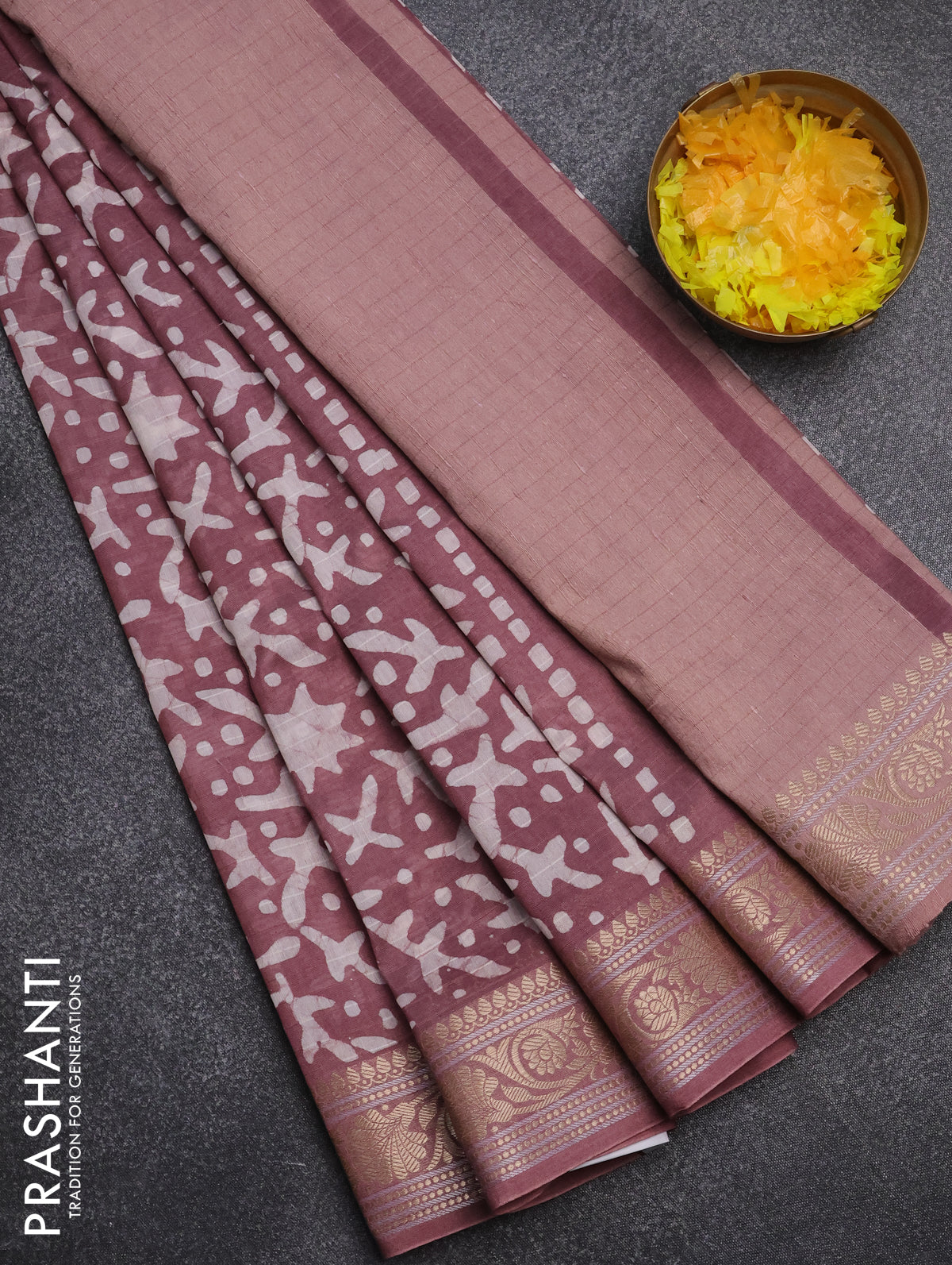 Maheshwari silk cotton saree mauve pink with batik prints and zari woven border