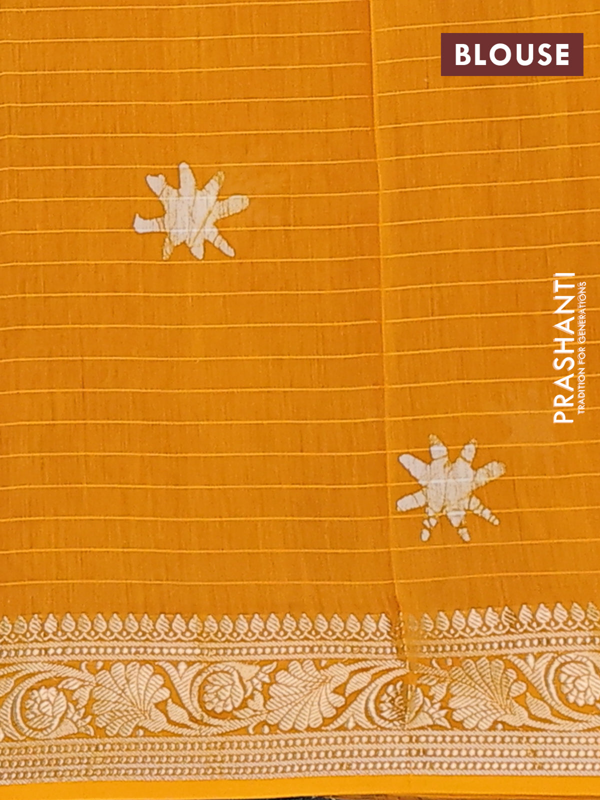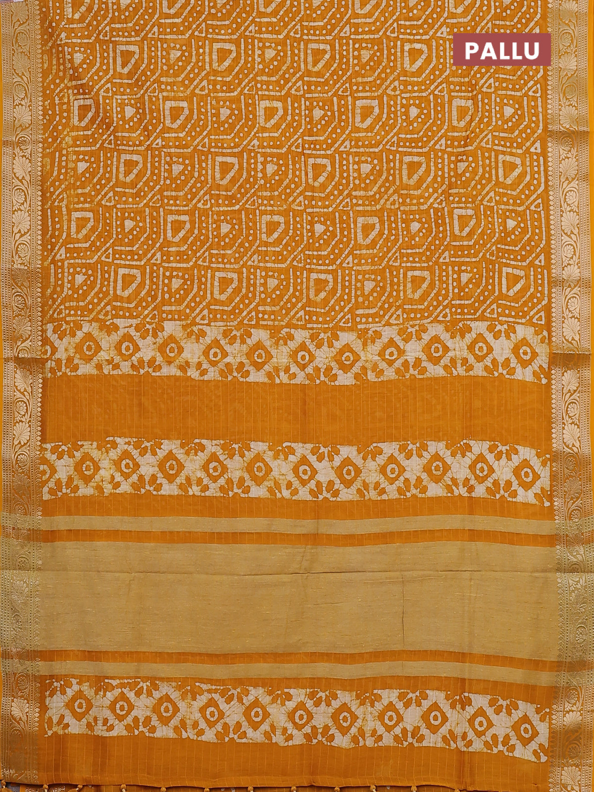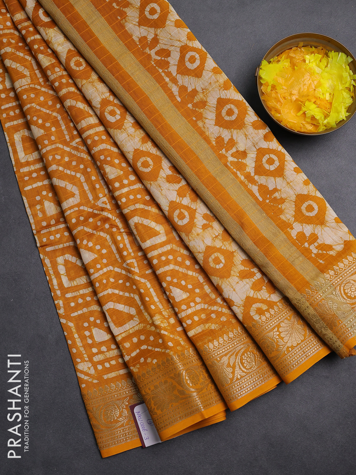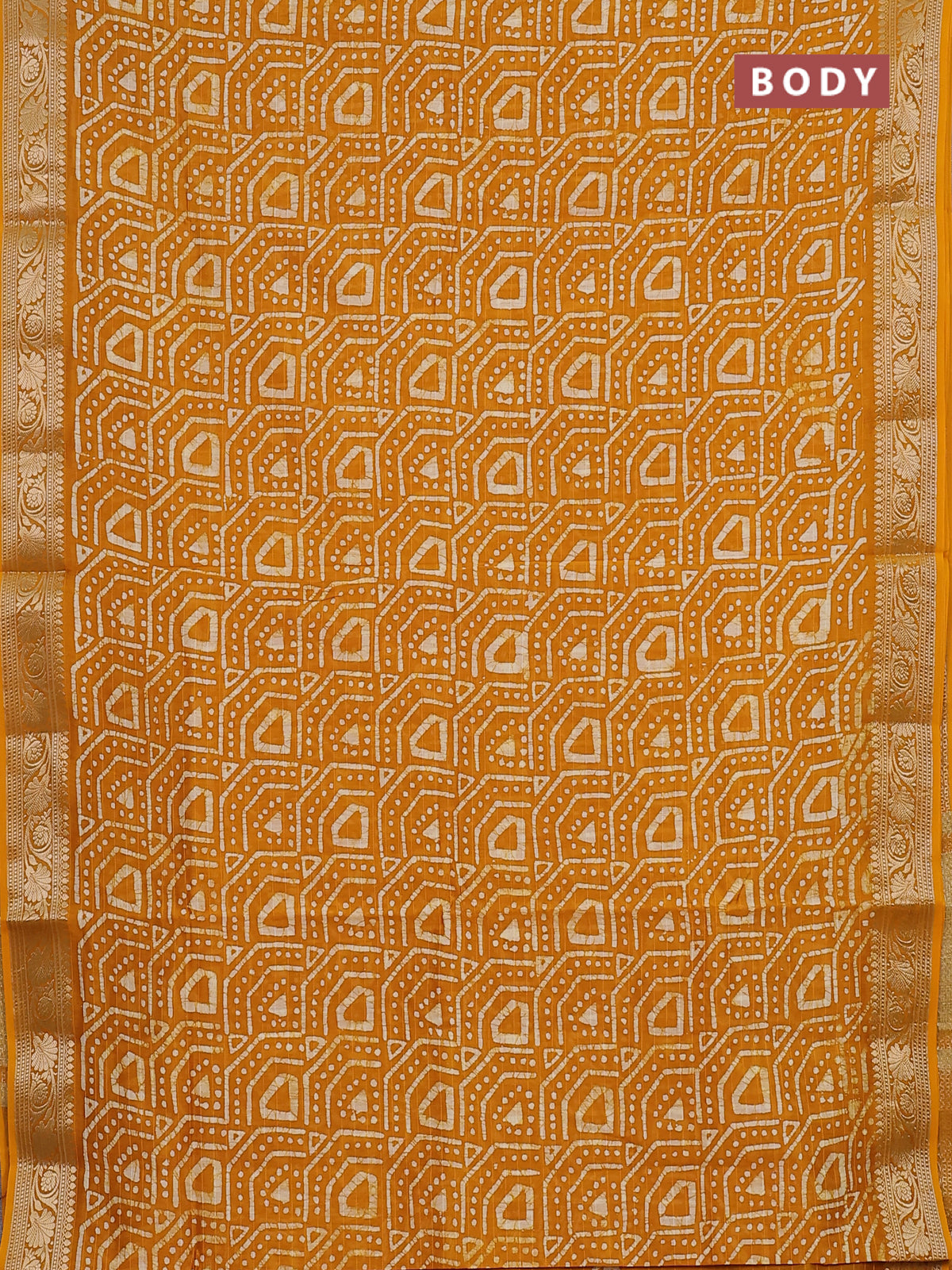 Maheshwari silk cotton saree mustard yellow with allover batik prints and zari woven border