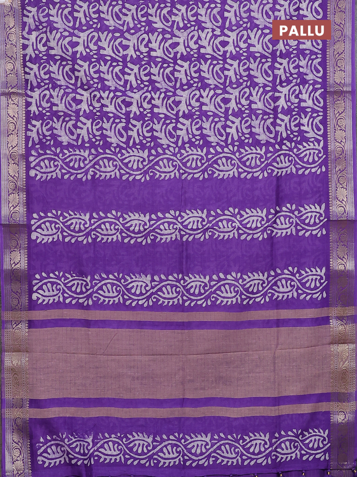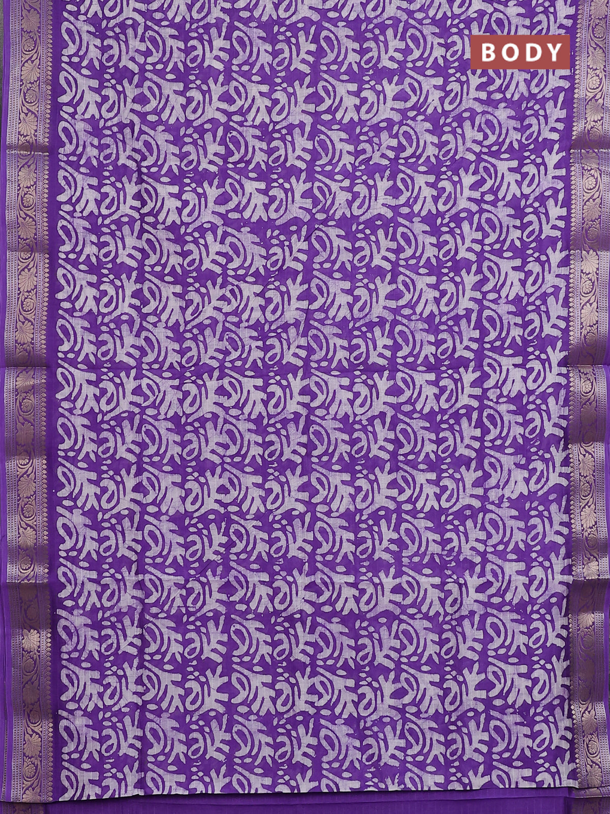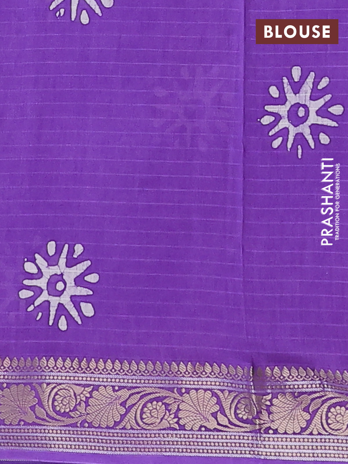Maheshwari silk cotton saree violet with allover batik prints and zari woven border