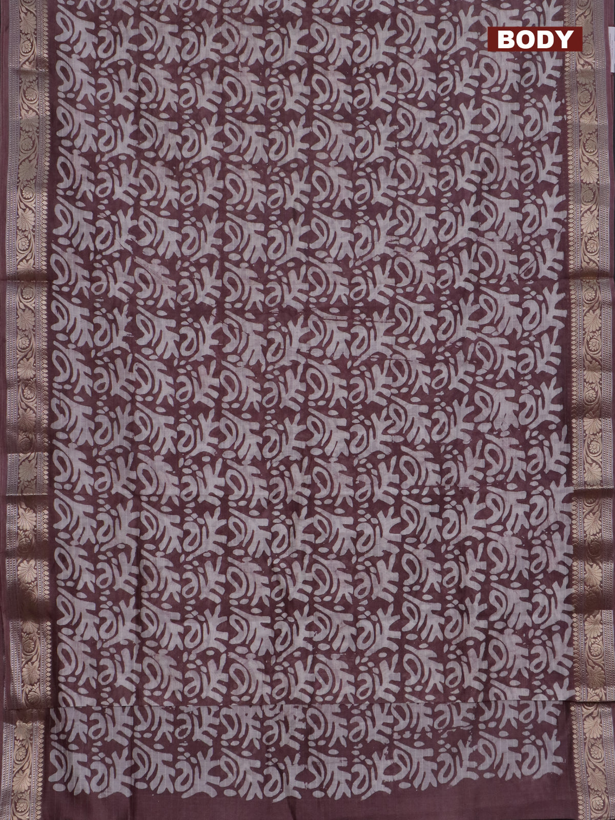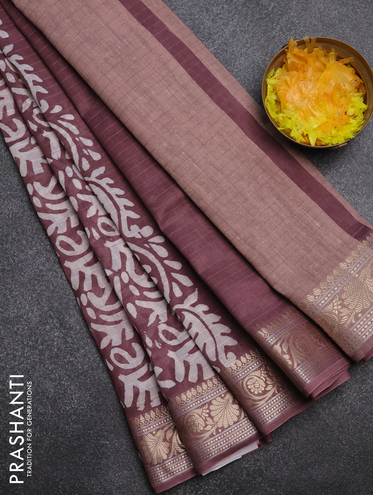 Maheshwari silk cotton saree wine shade with batik prints and zari woven border