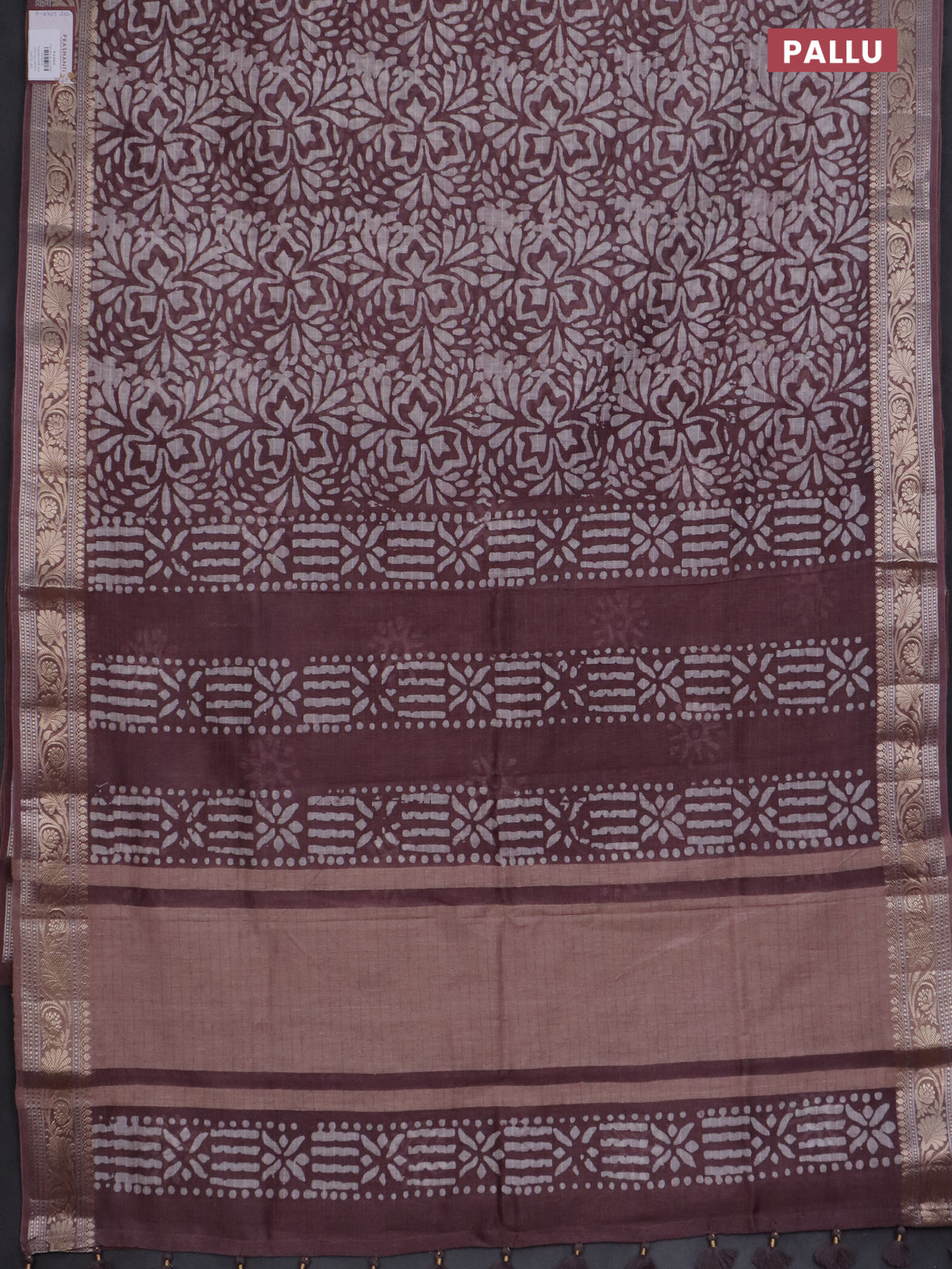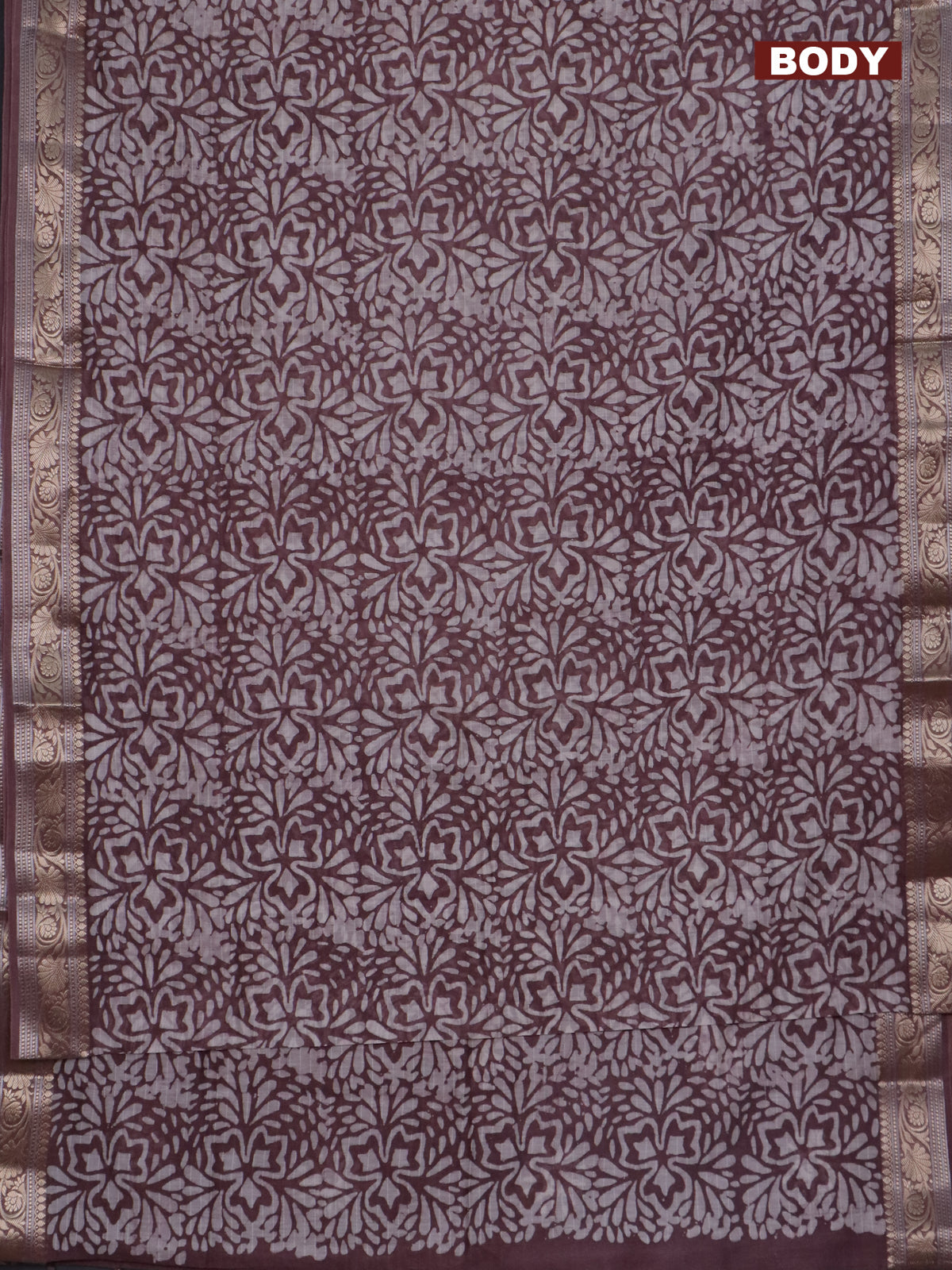 Maheshwari silk cotton saree wine shade with batik prints and zari woven border