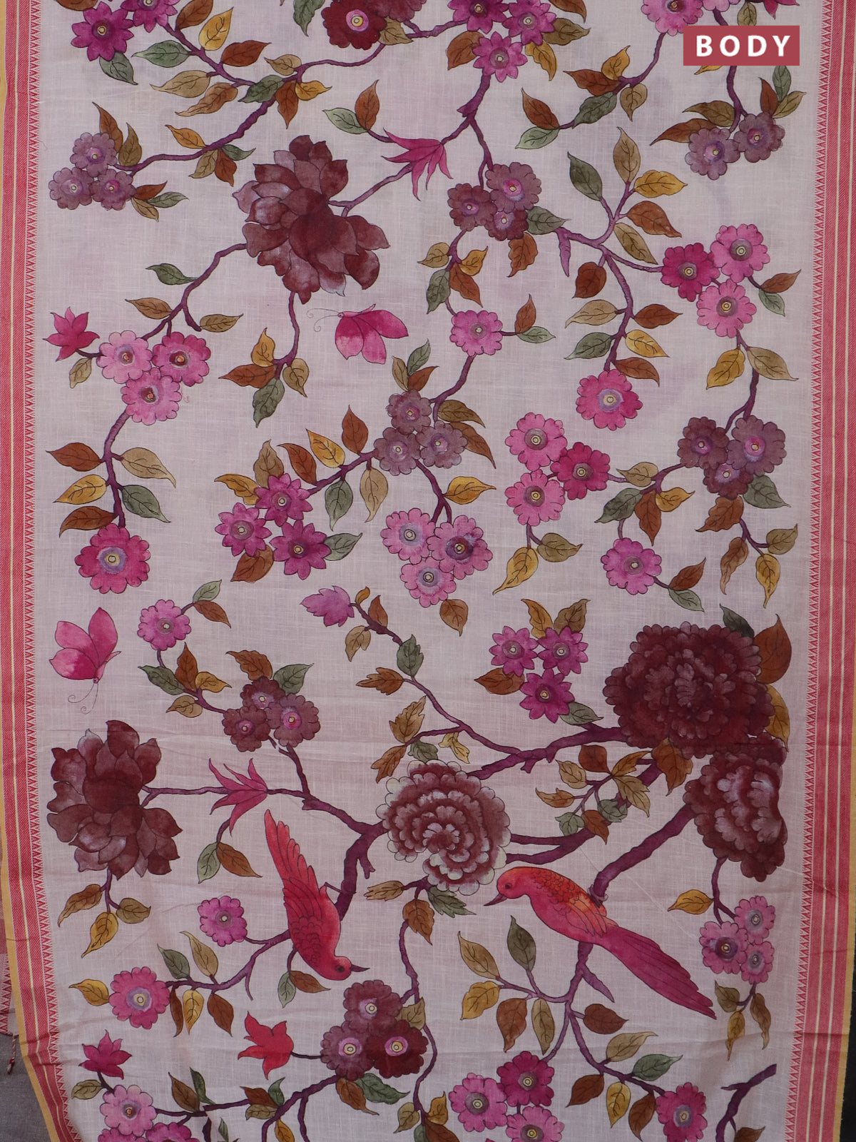 Mangalgiri cotton saree cream and maroon with allover floral prints and thread woven border