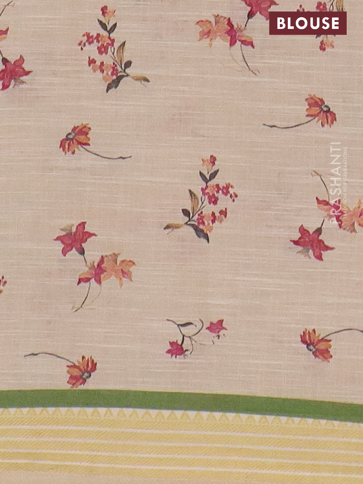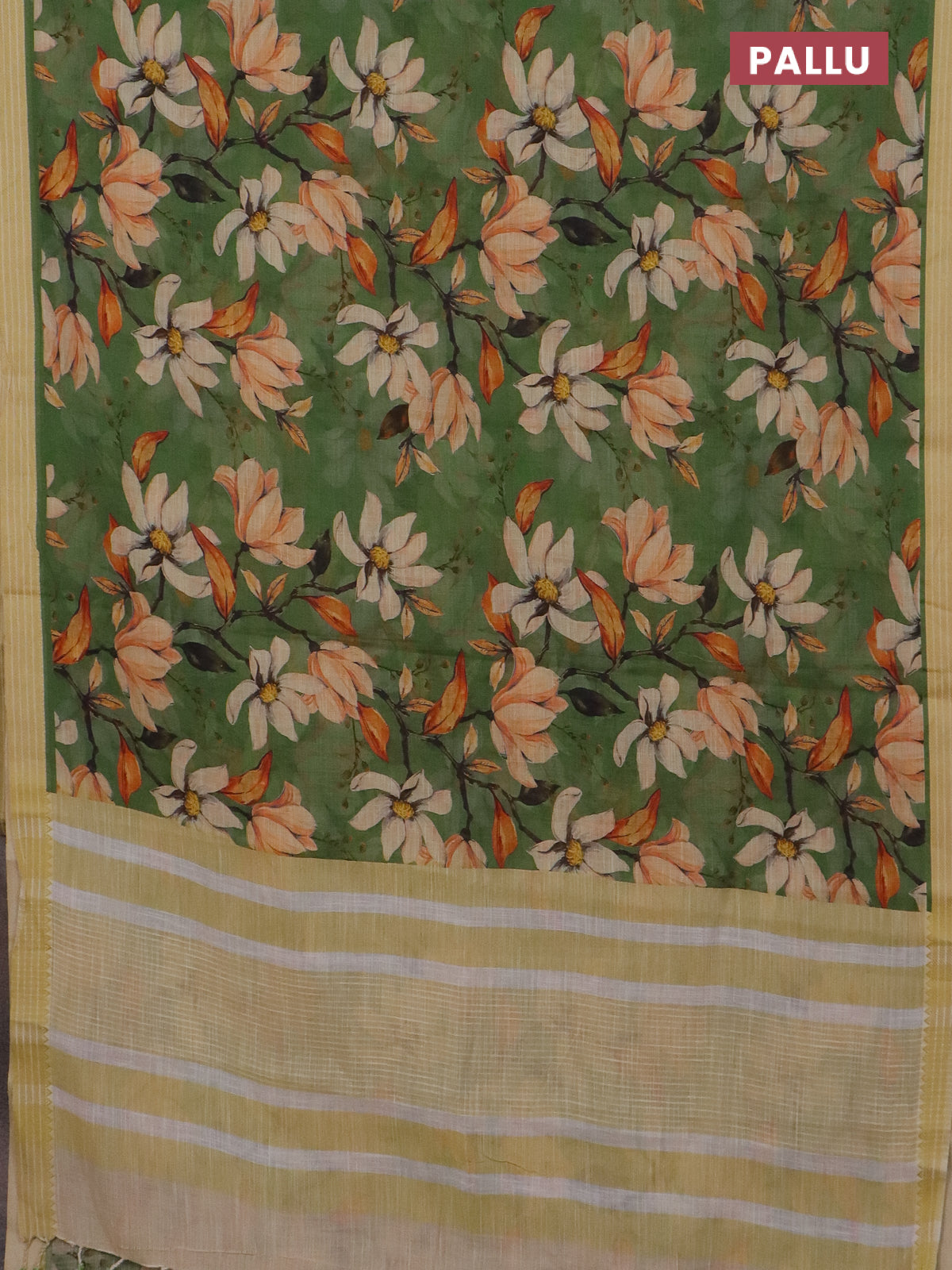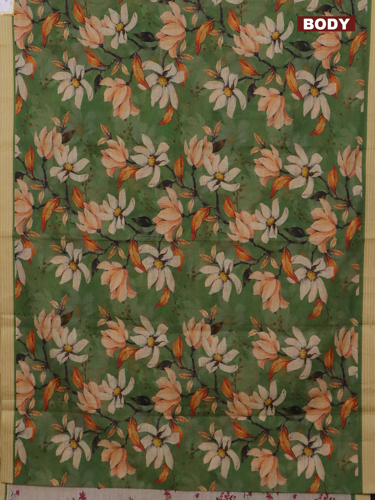 Mangalgiri cotton saree green and mustard yellow with allover floral prints and thread woven border