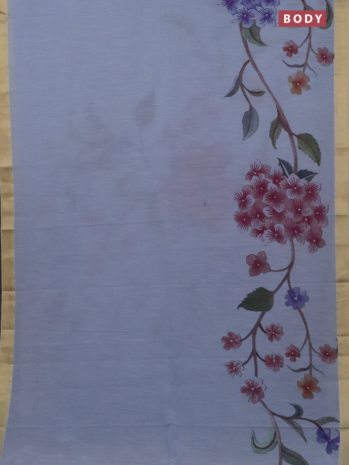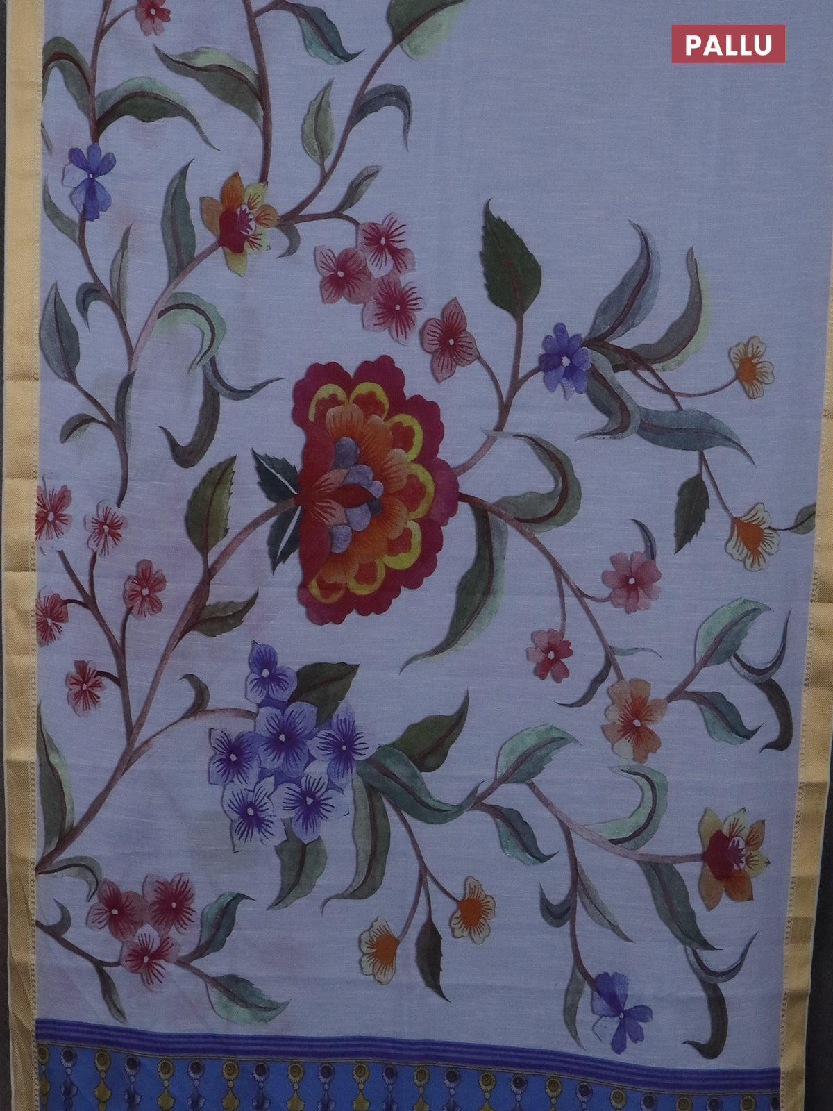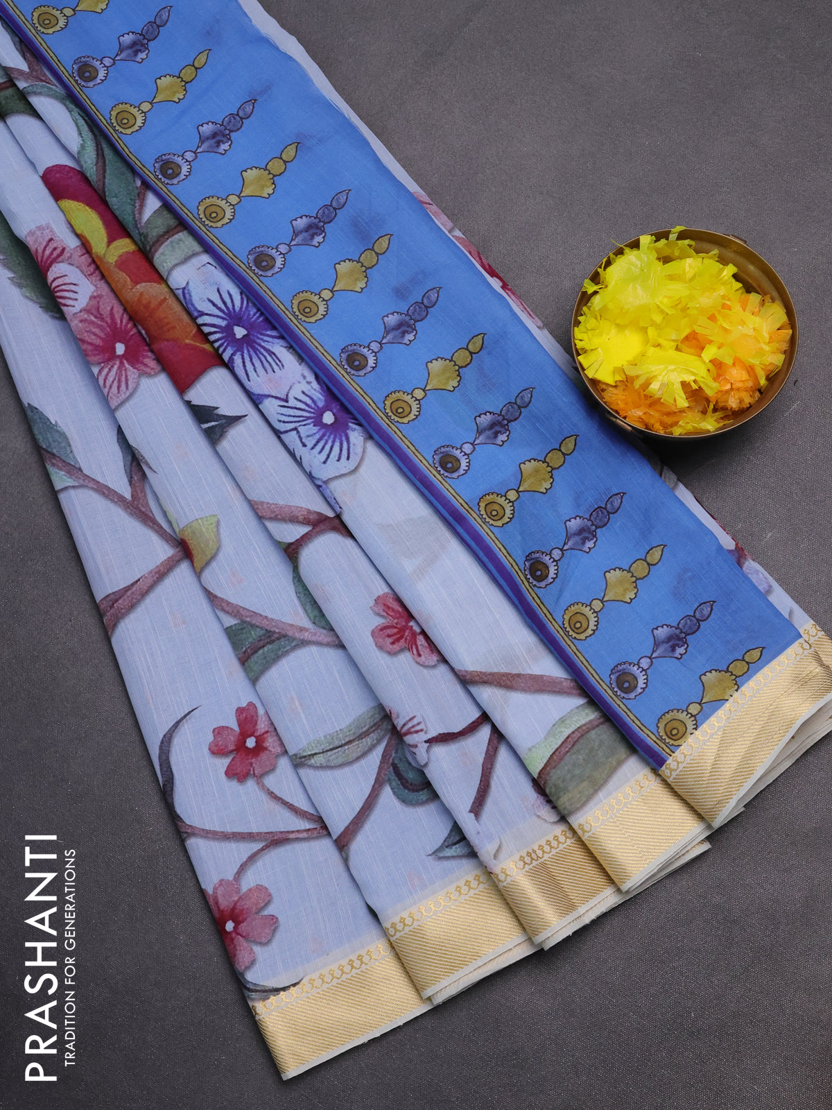 Mangalgiri cotton saree grey and cream with floral prints and zari woven border