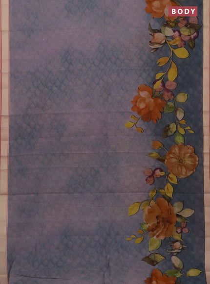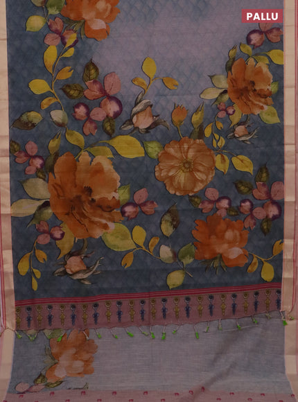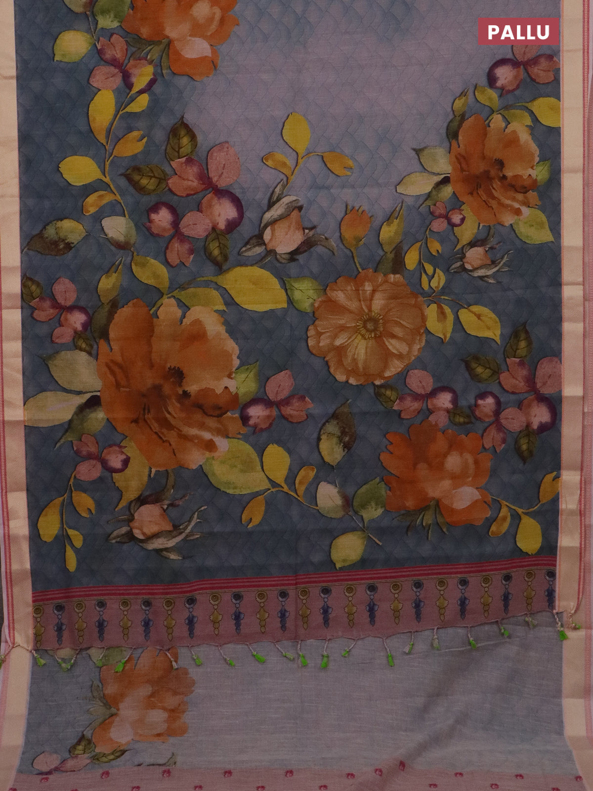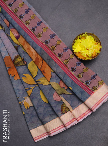 Mangalgiri cotton saree grey shade and baby pink with allover prints and thread woven border