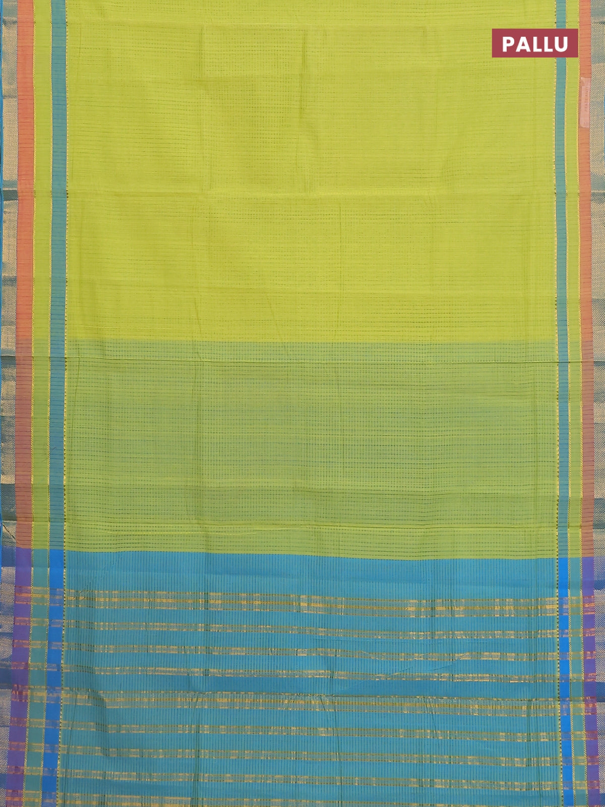 Mangalgiri cotton saree lime green and cs blue with allover stripe pattern and zari woven border
