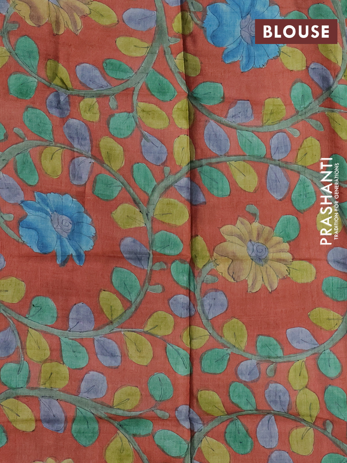 Mangalgiri silk cotton saree cs blue and rustic orange with allover silver zari stripe pattern and long rettapet silver zari wove checked border
