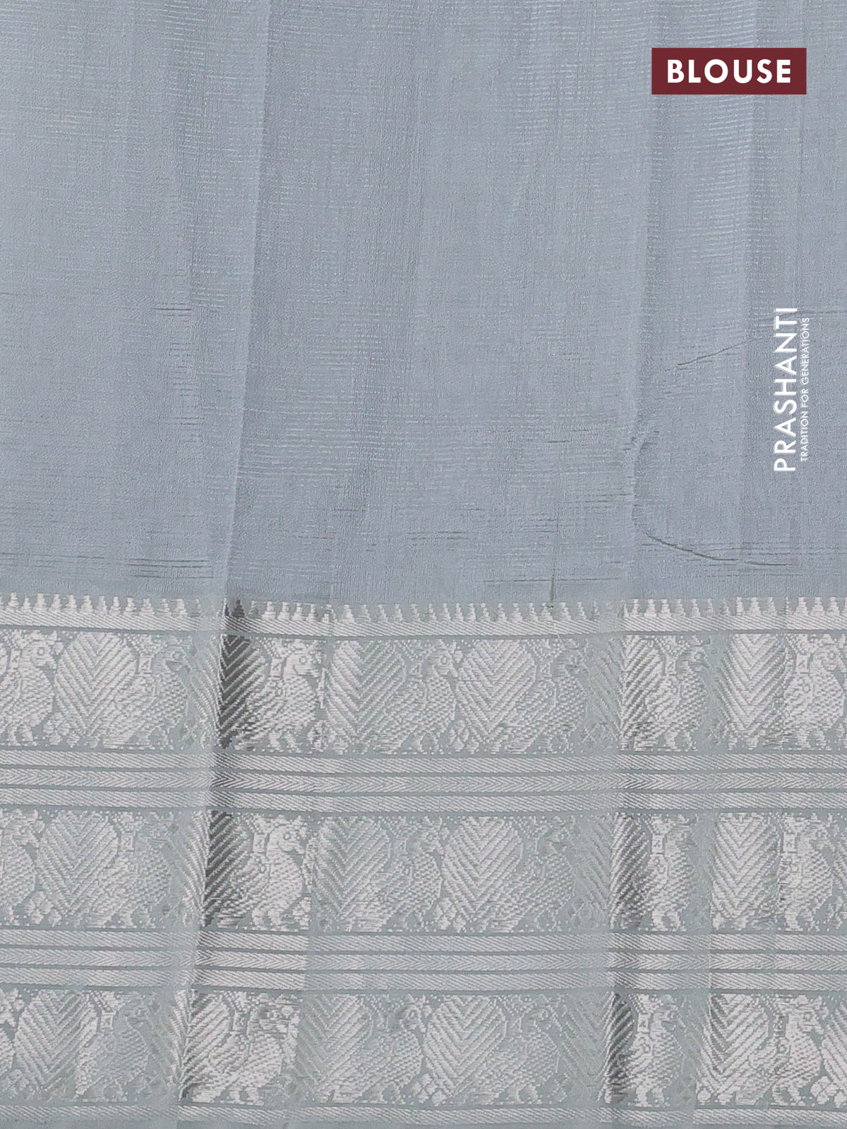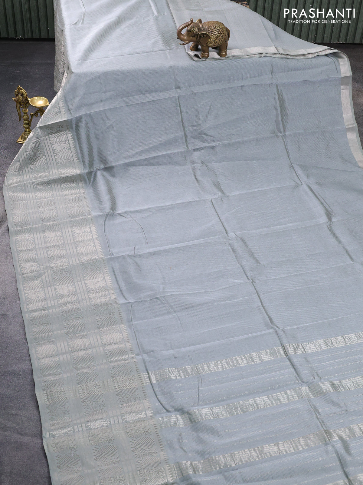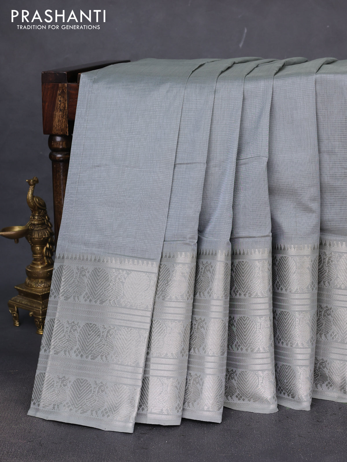 Mangalgiri silk cotton saree grey with plain body and long annam silver zari woven border