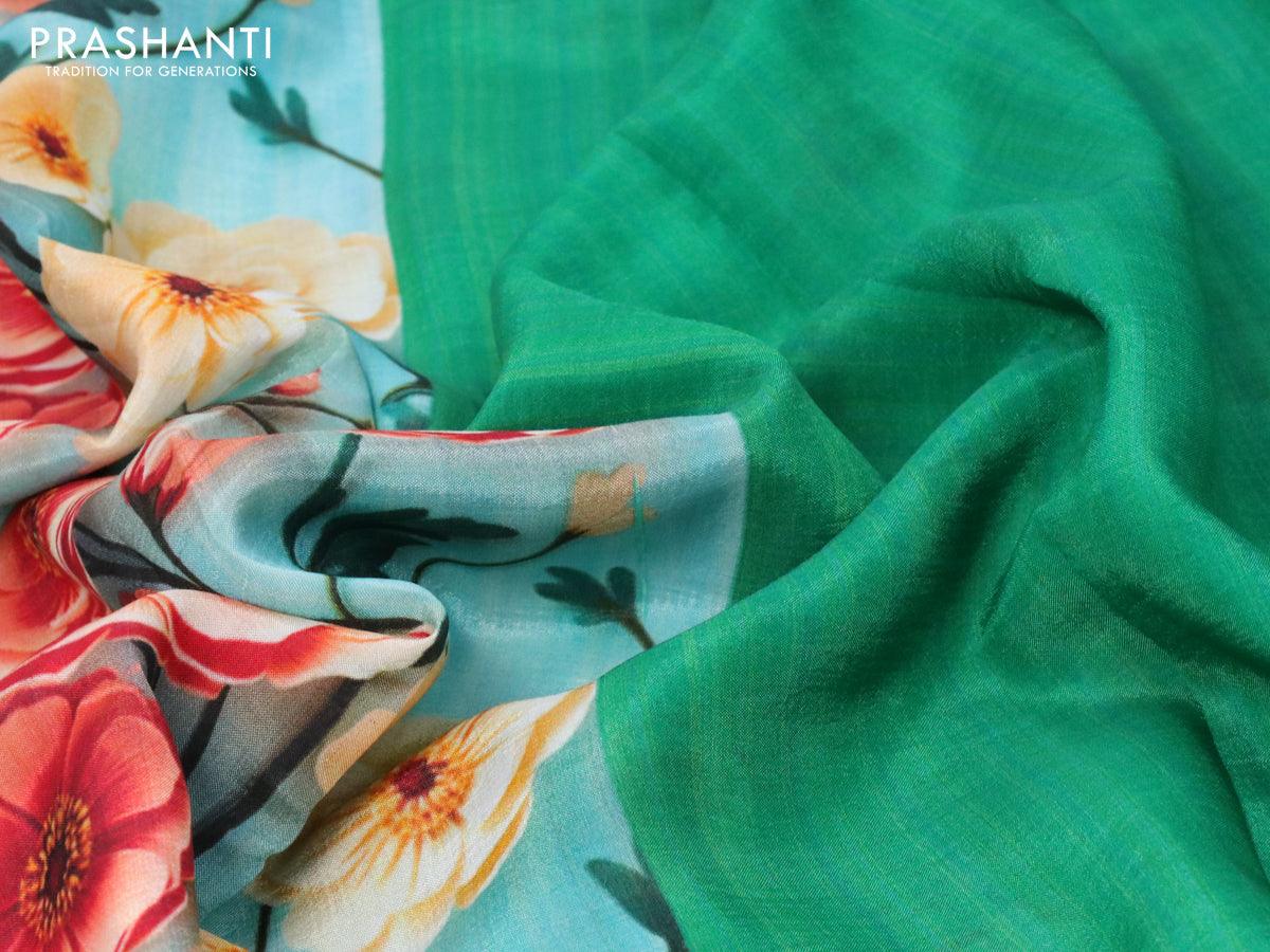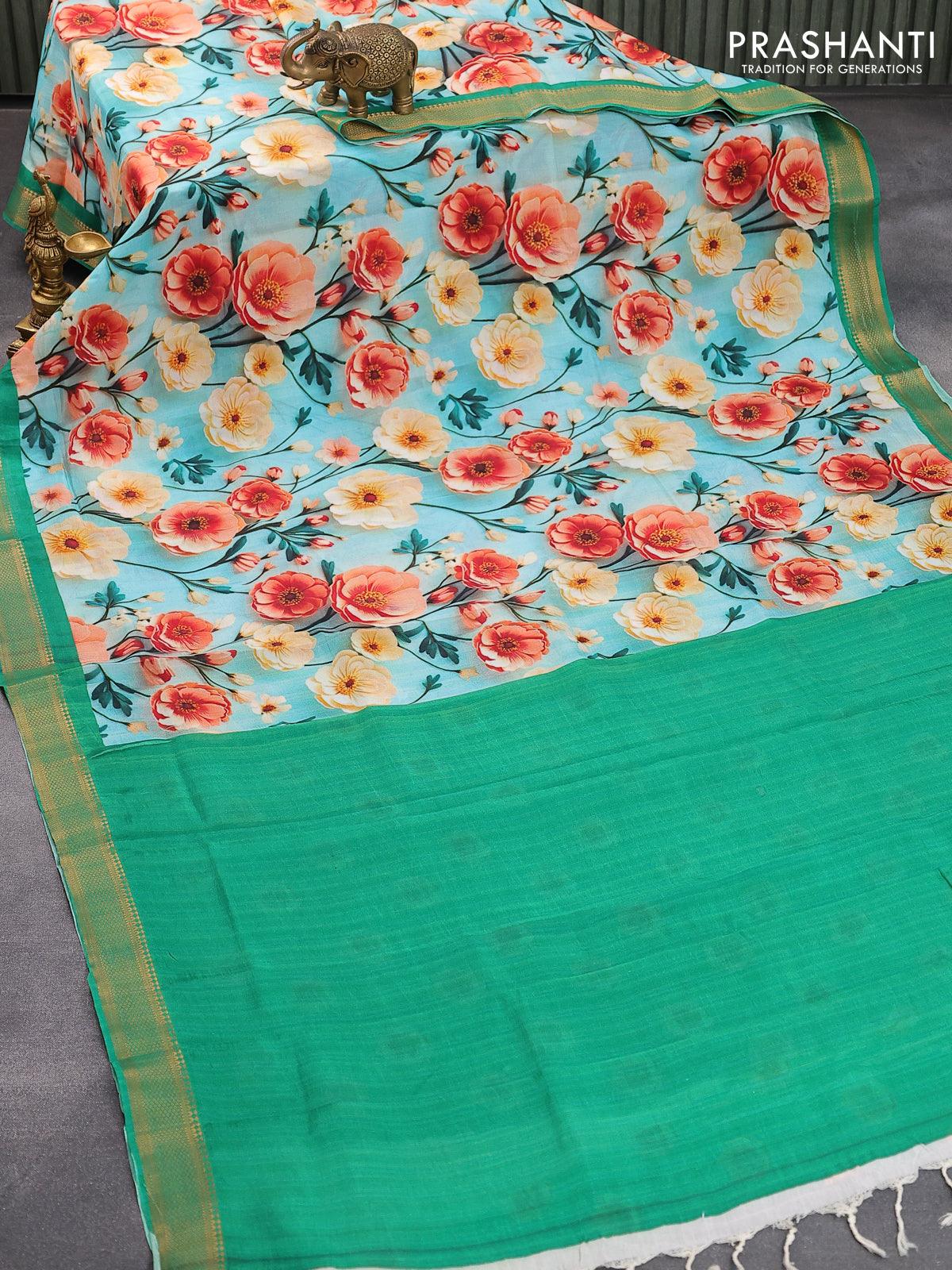 Mangalgiri silk cotton saree light blue and green with allover floral prints and zari woven border