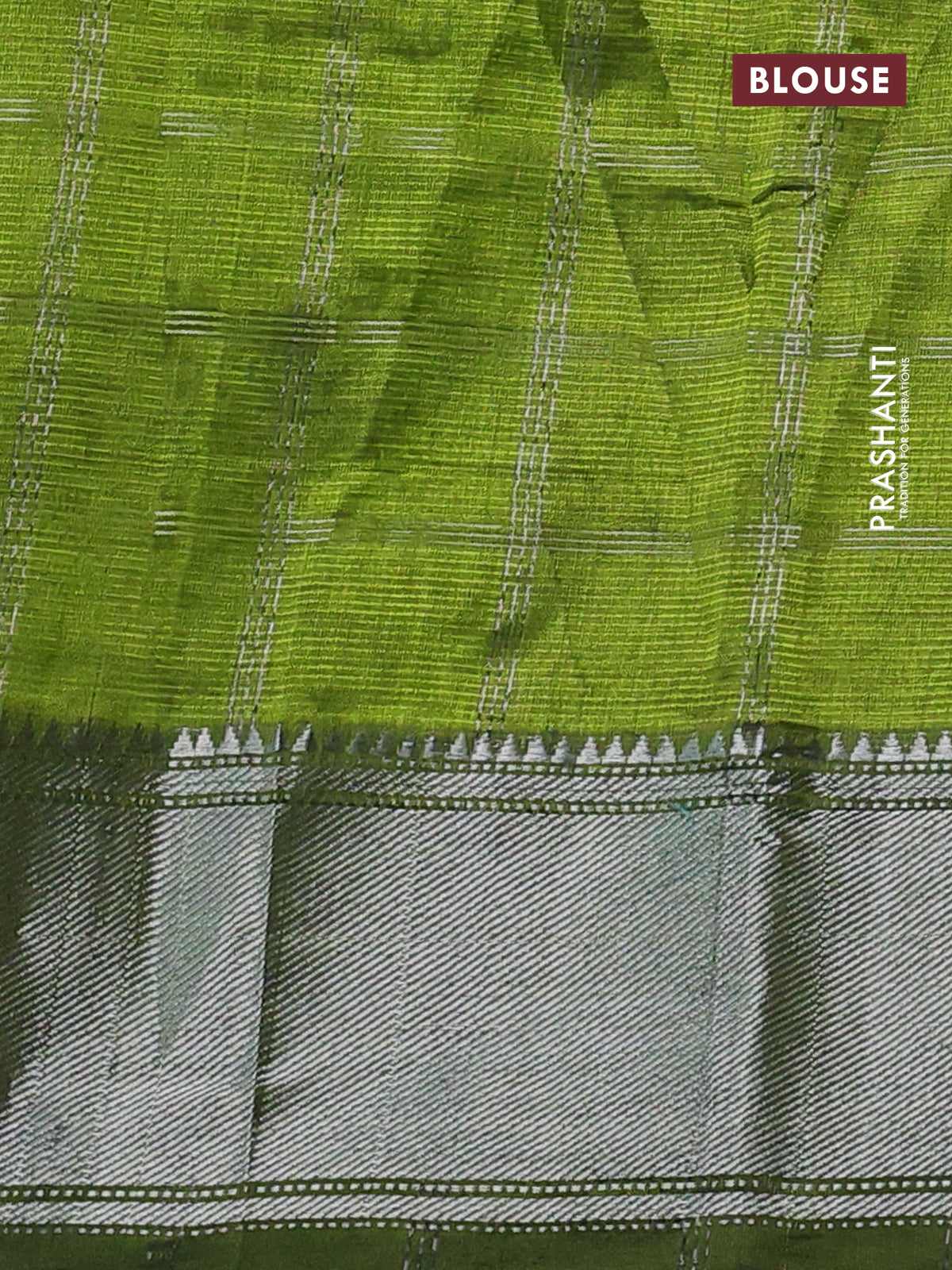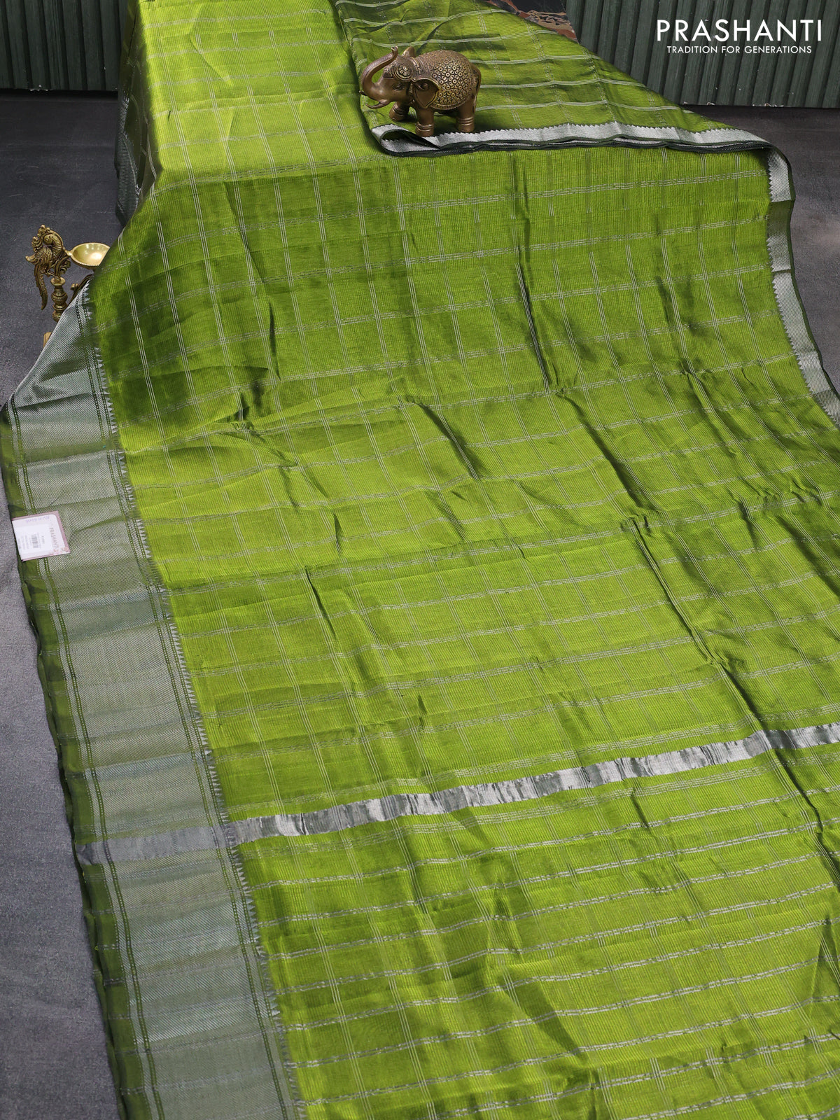 Mangalgiri silk cotton saree light green with allover silver zari woven checked pattern and silver zari woven border