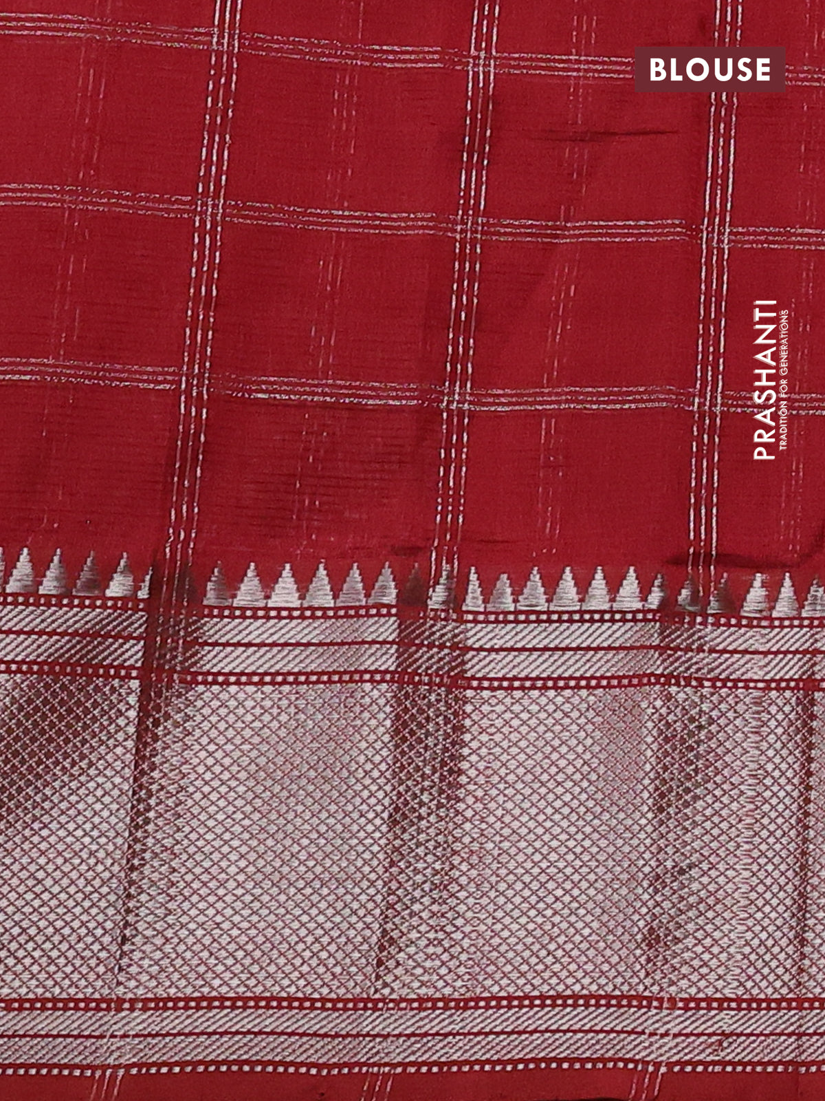 Mangalgiri silk cotton saree maroon with allover silver zari woven checked pattern and silver zari woven border