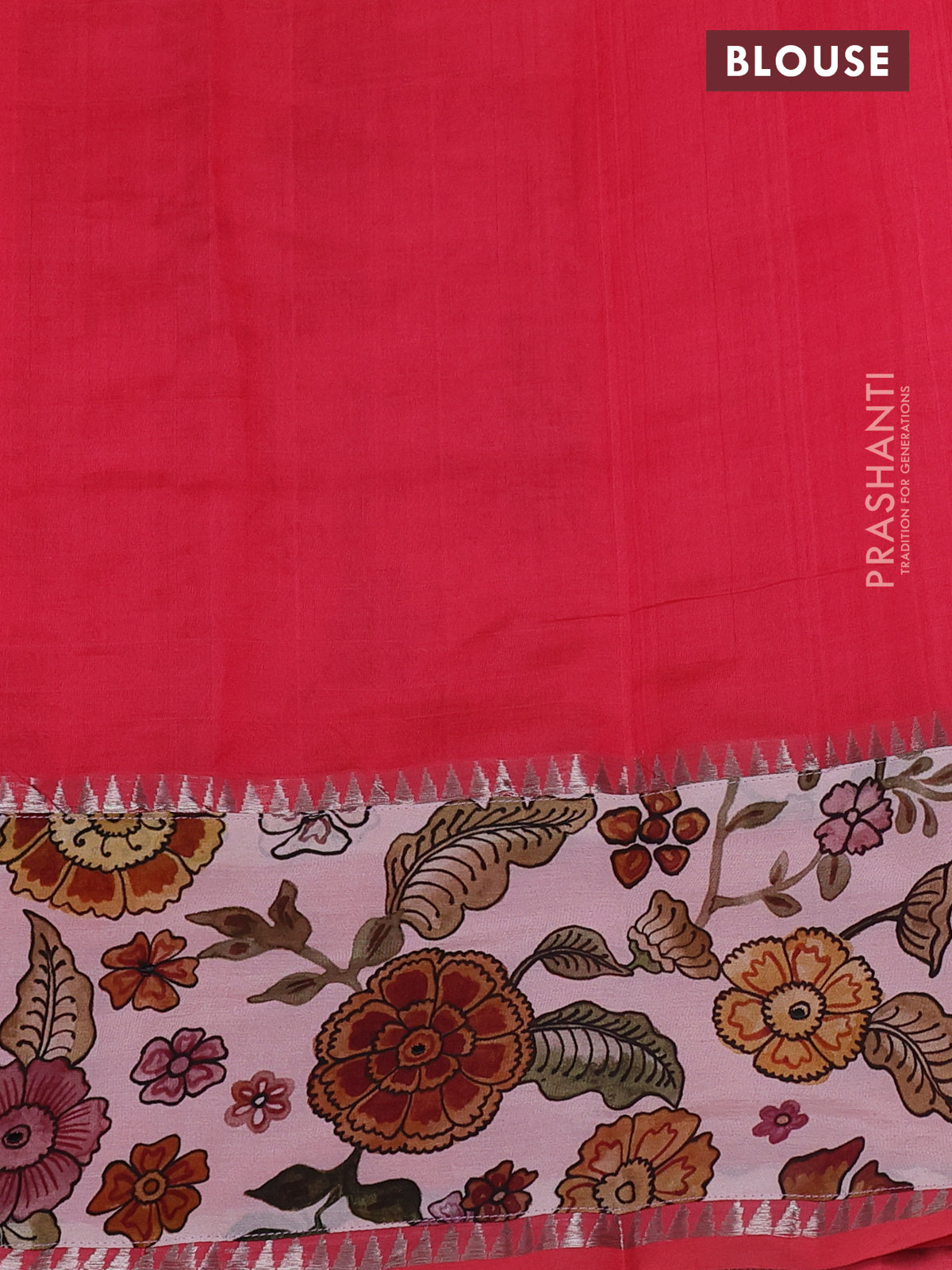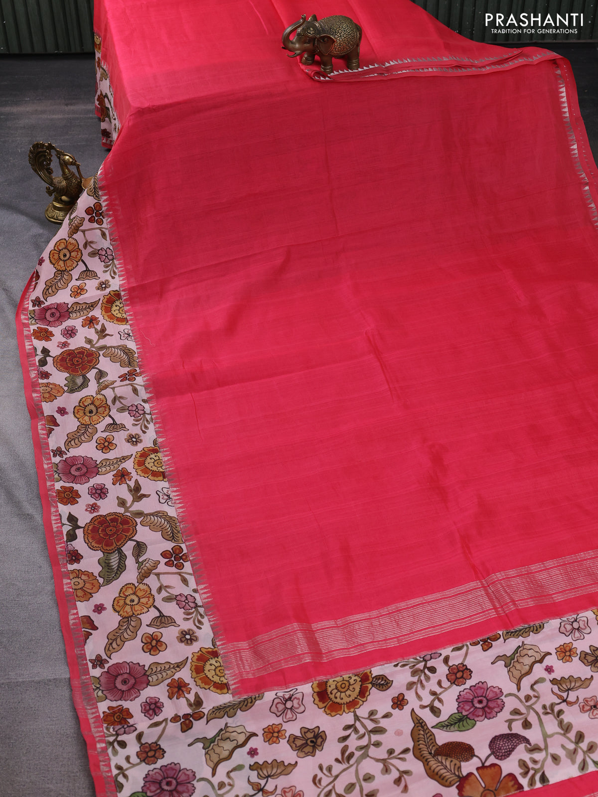 Mangalgiri silk cotton saree peach pink with plain body and long kalamkari printed applique border