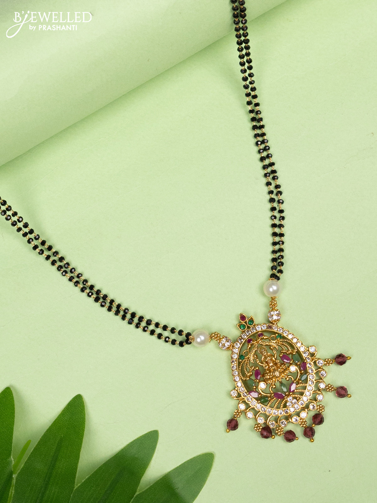 Mangalsutra double layer lakshmi design with kemp & cz stones and crystal beads hangings without earring