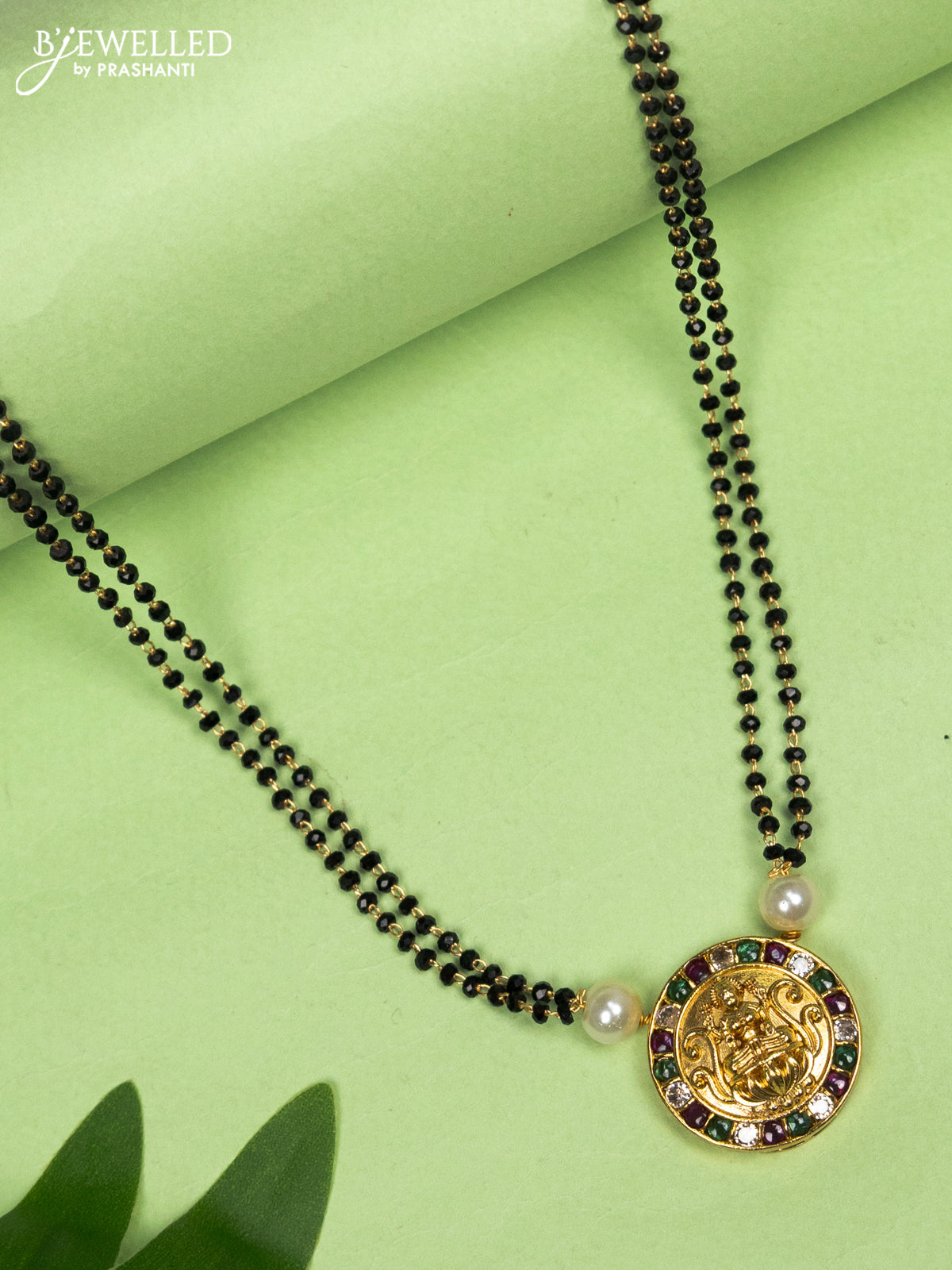 Mangalsutra double layer lakshmi pendant with kemp & cz stones without earring
