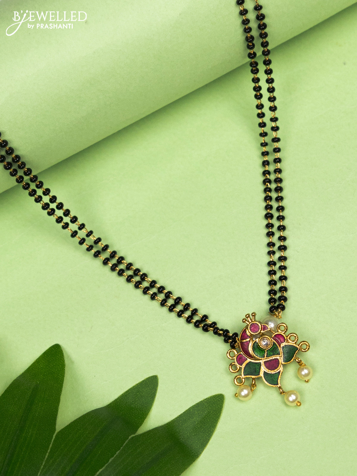 Mangalsutra double layer peacock pendant with kemp & cz stones and pearl hangings without earring