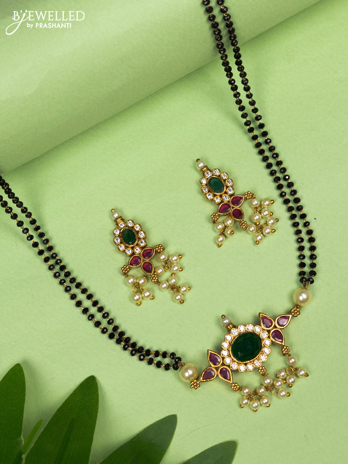 Mangalsutra double layer with kemp & cz stones and pearl hangings