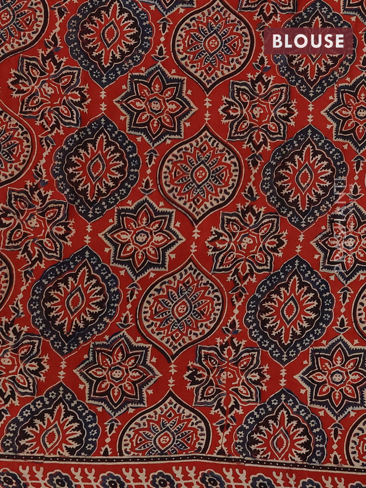 Modal silk saree black and orange with plain body and ajrakh printed pallu & blouse