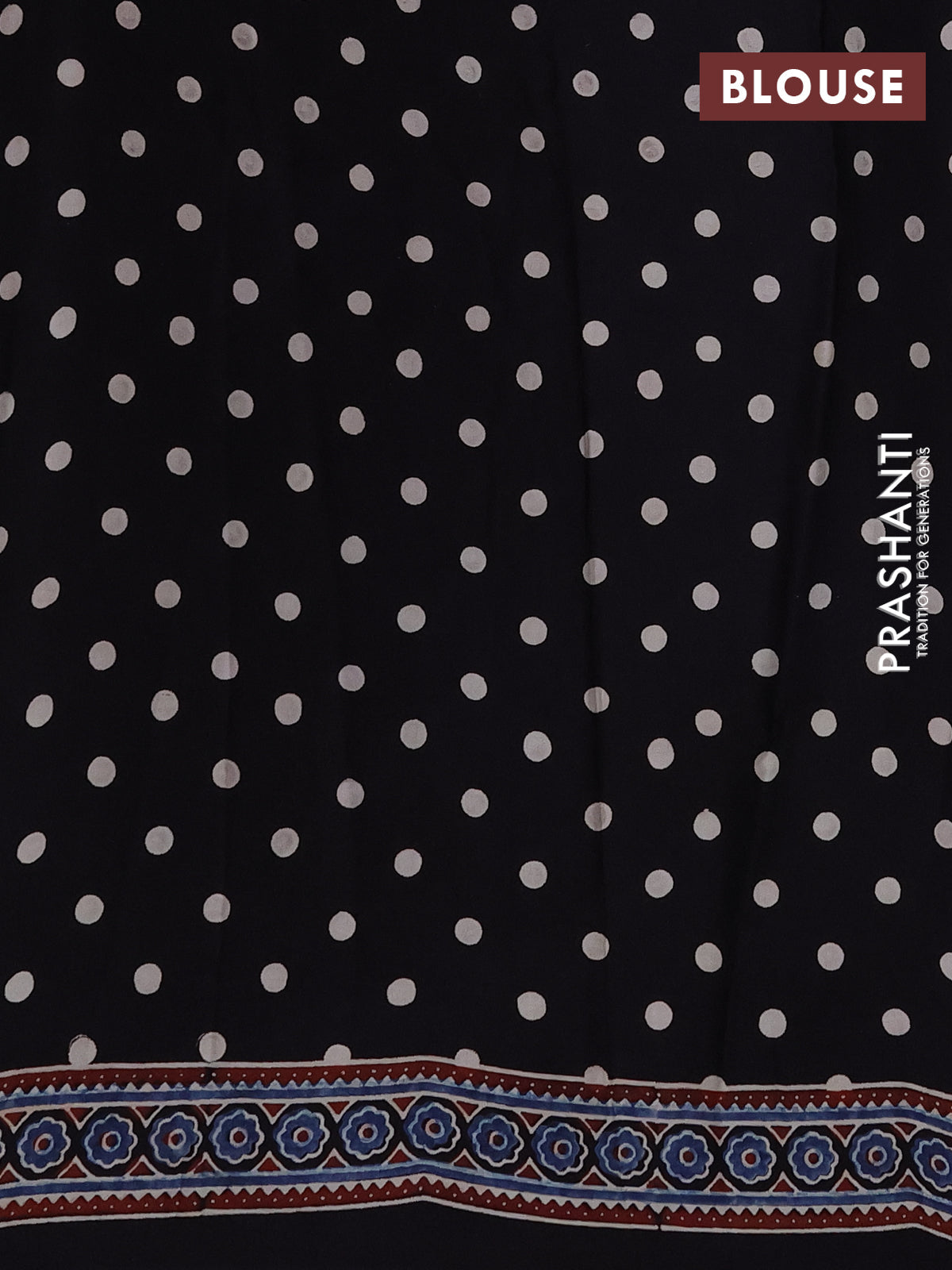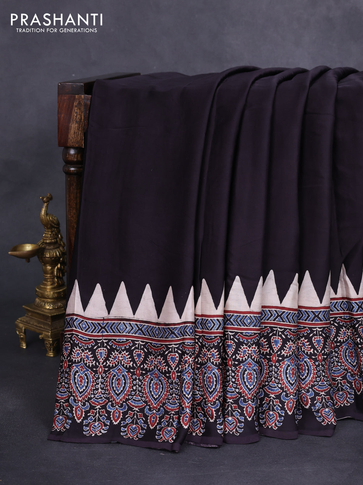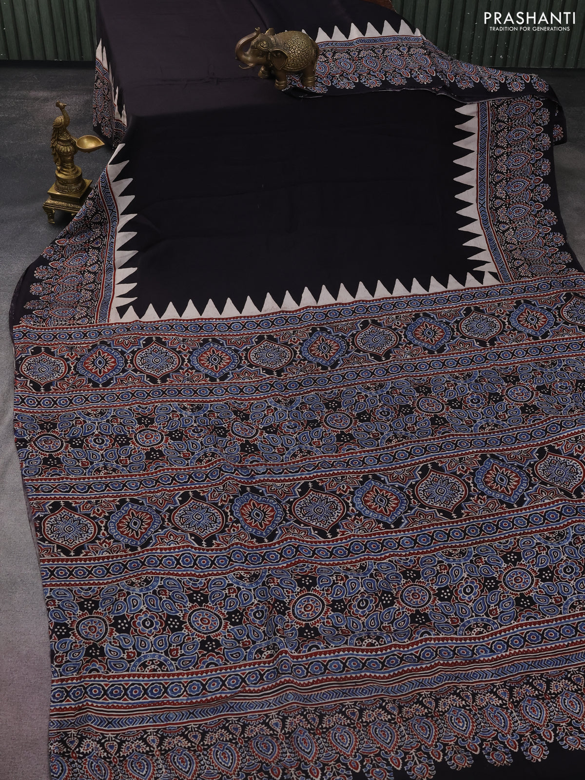 Modal silk saree black with plain body and ajrakh printed border & pallu