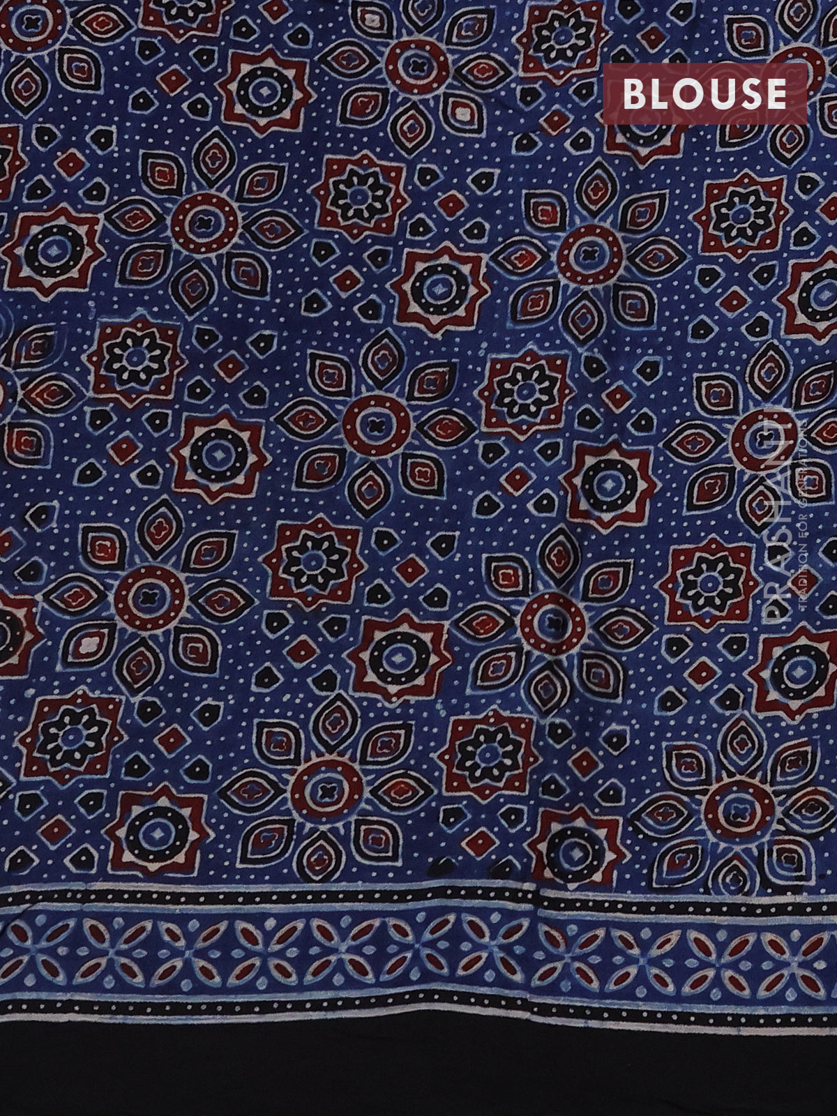 Modal silk saree dark mustard and black with allover bandhini prints and ajrakh printed pallu & blouse