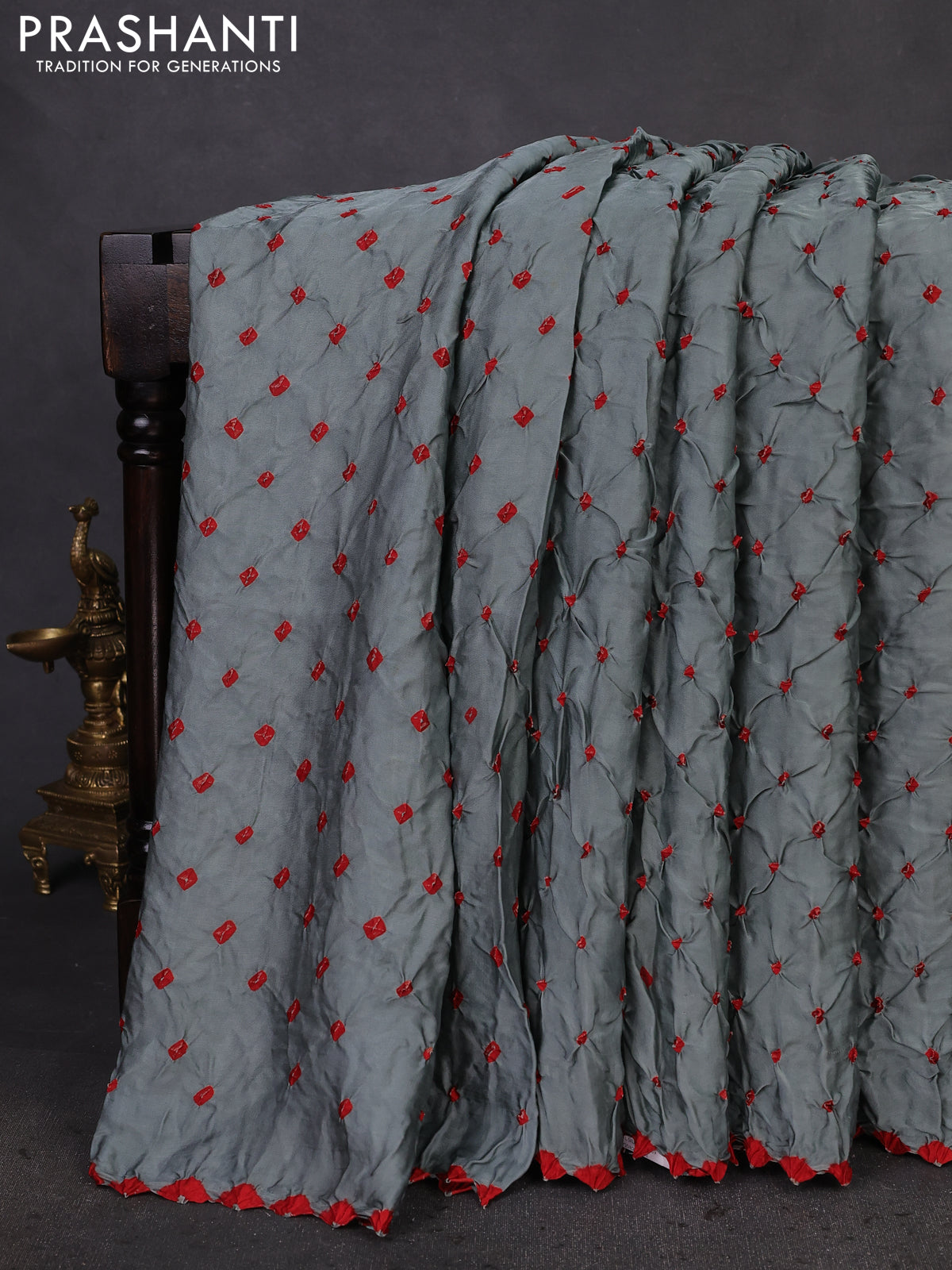 Modal silk saree grey and blue with allover bandhani butta prints and ajrakh printed pallu & Blouse