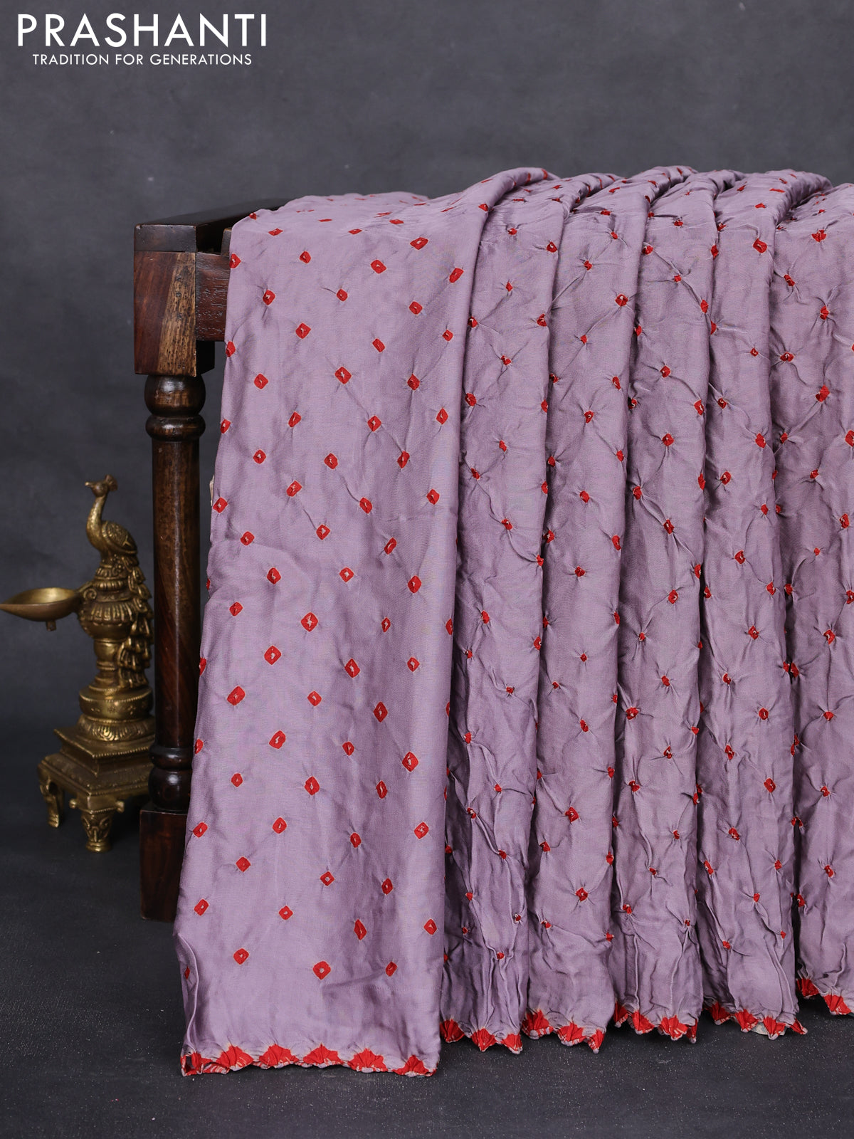 Modal silk saree lavender and peacock blue with allover bandhani butta prints and ajrakh printed pallu & Blouse