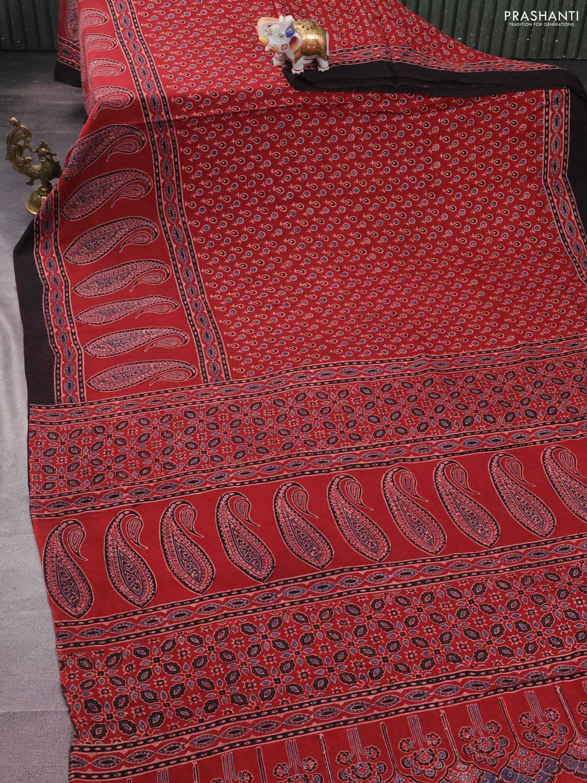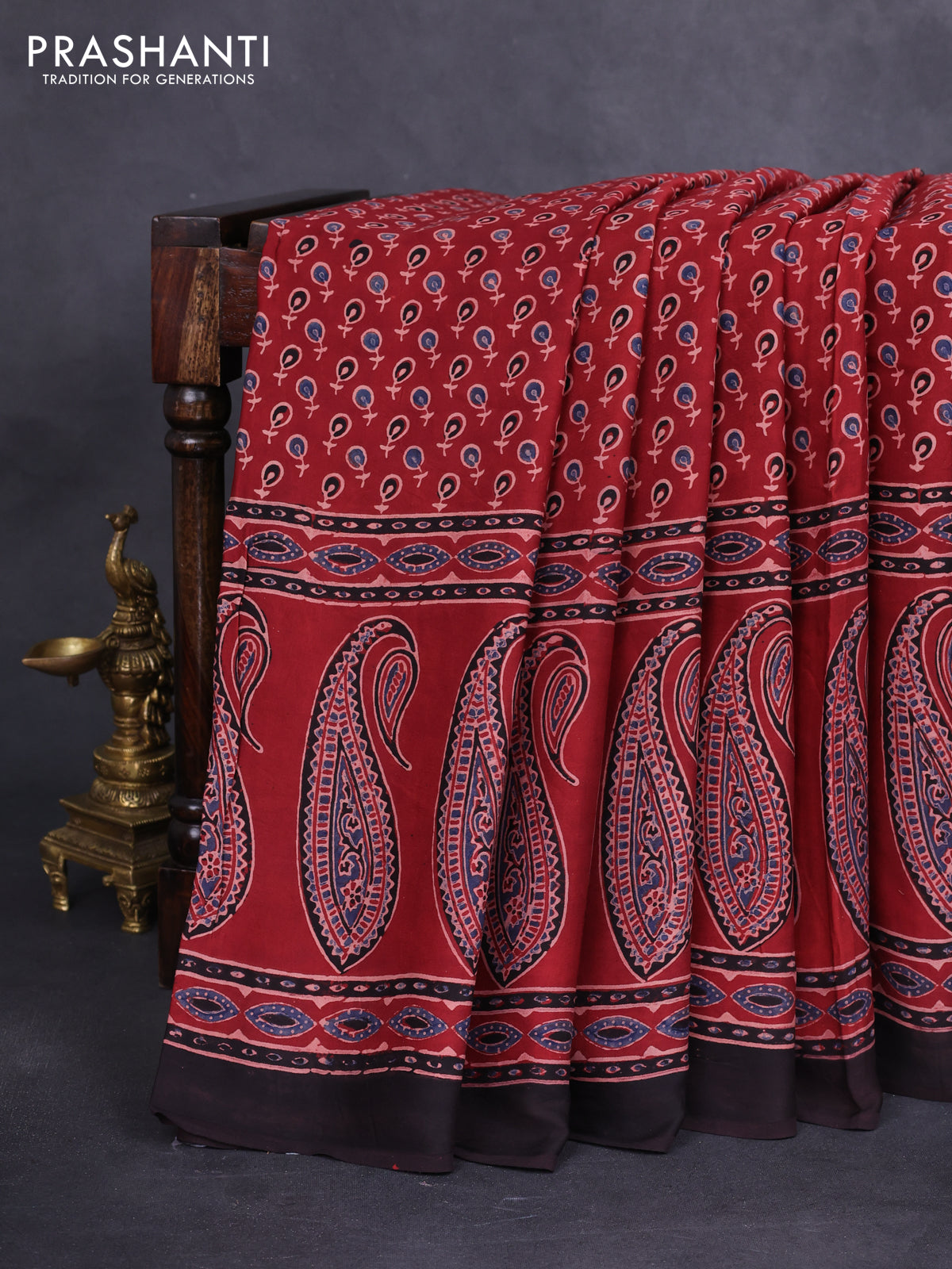 Modal silk saree maroon and black with allover ajrakh prints and printed border
