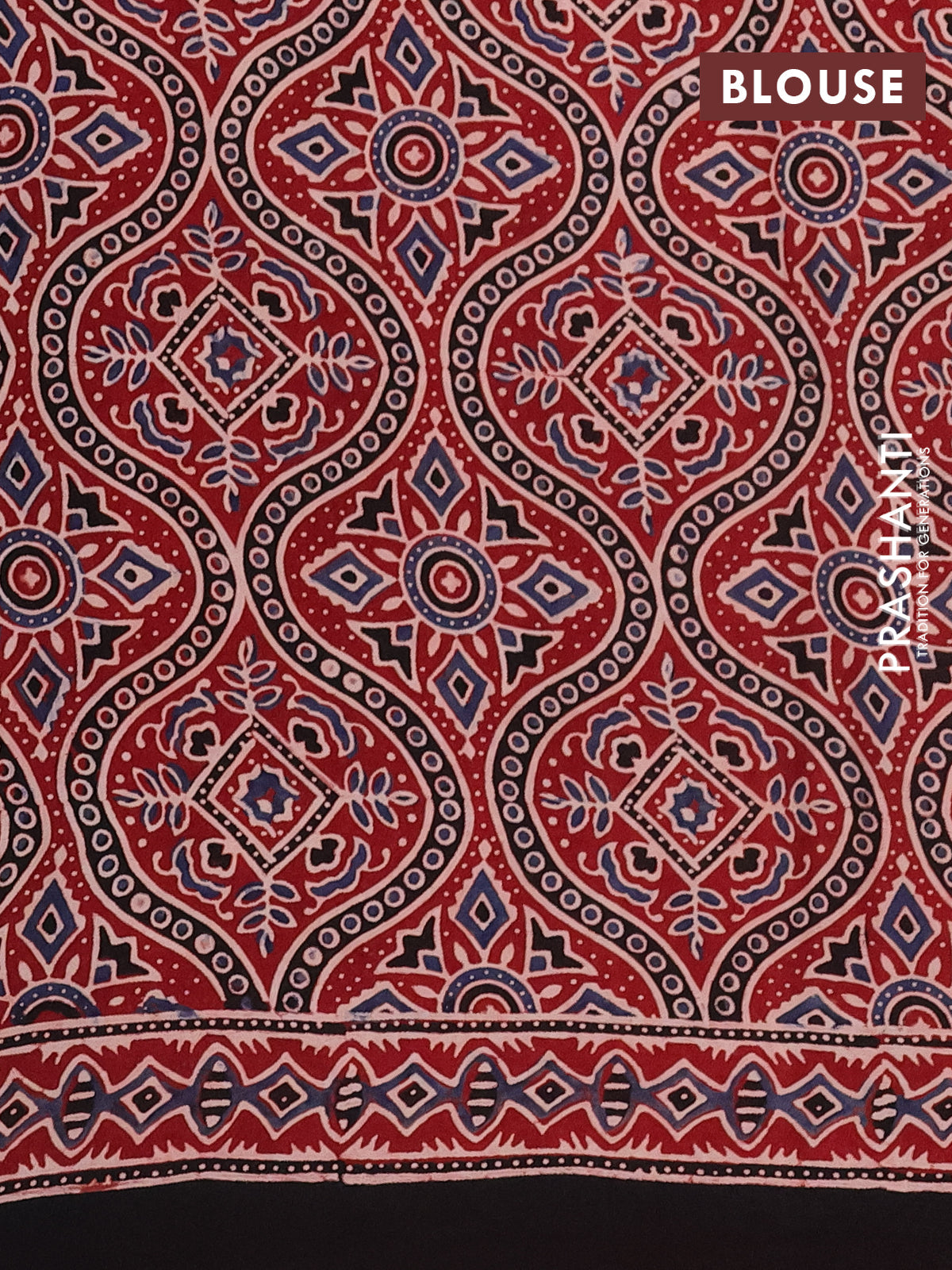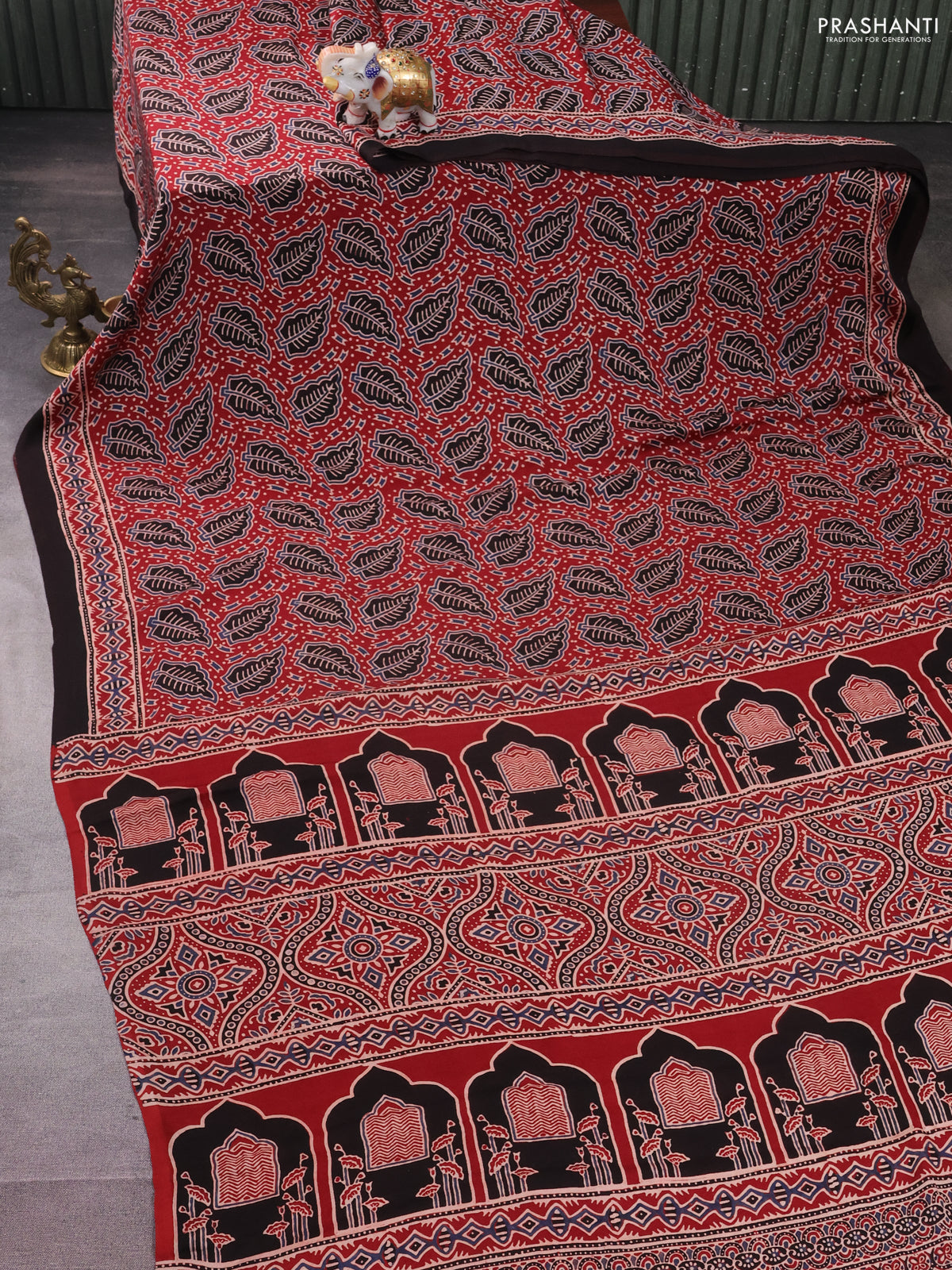 Modal silk saree maroon and black with allover ajrakh prints and printed border