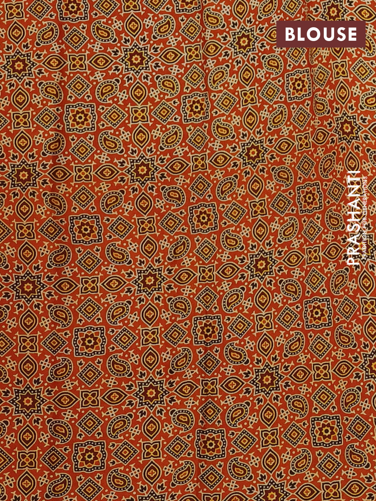 Modal silk saree orange with allover ajrakh prints and printed border