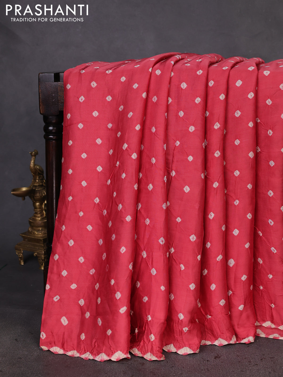 Modal silk saree peach pink and brown with allover bandhani butta prints and ajrakh printed pallu & Blouse