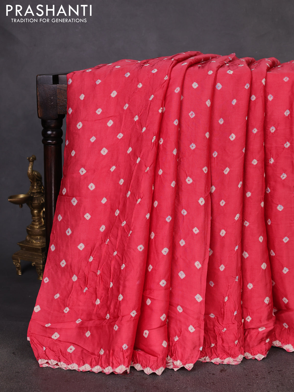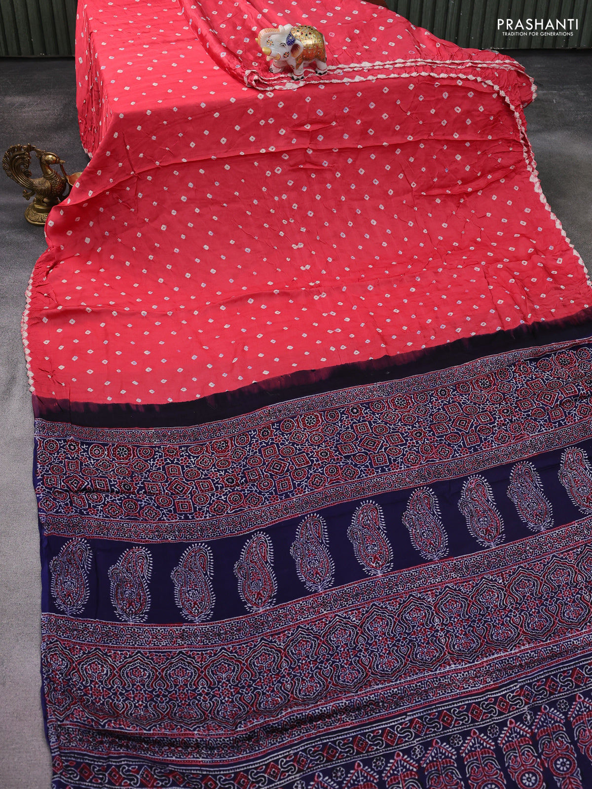 Modal silk saree peach pink and navy blue with allover bandhani butta prints and ajrakh printed pallu & Blouse
