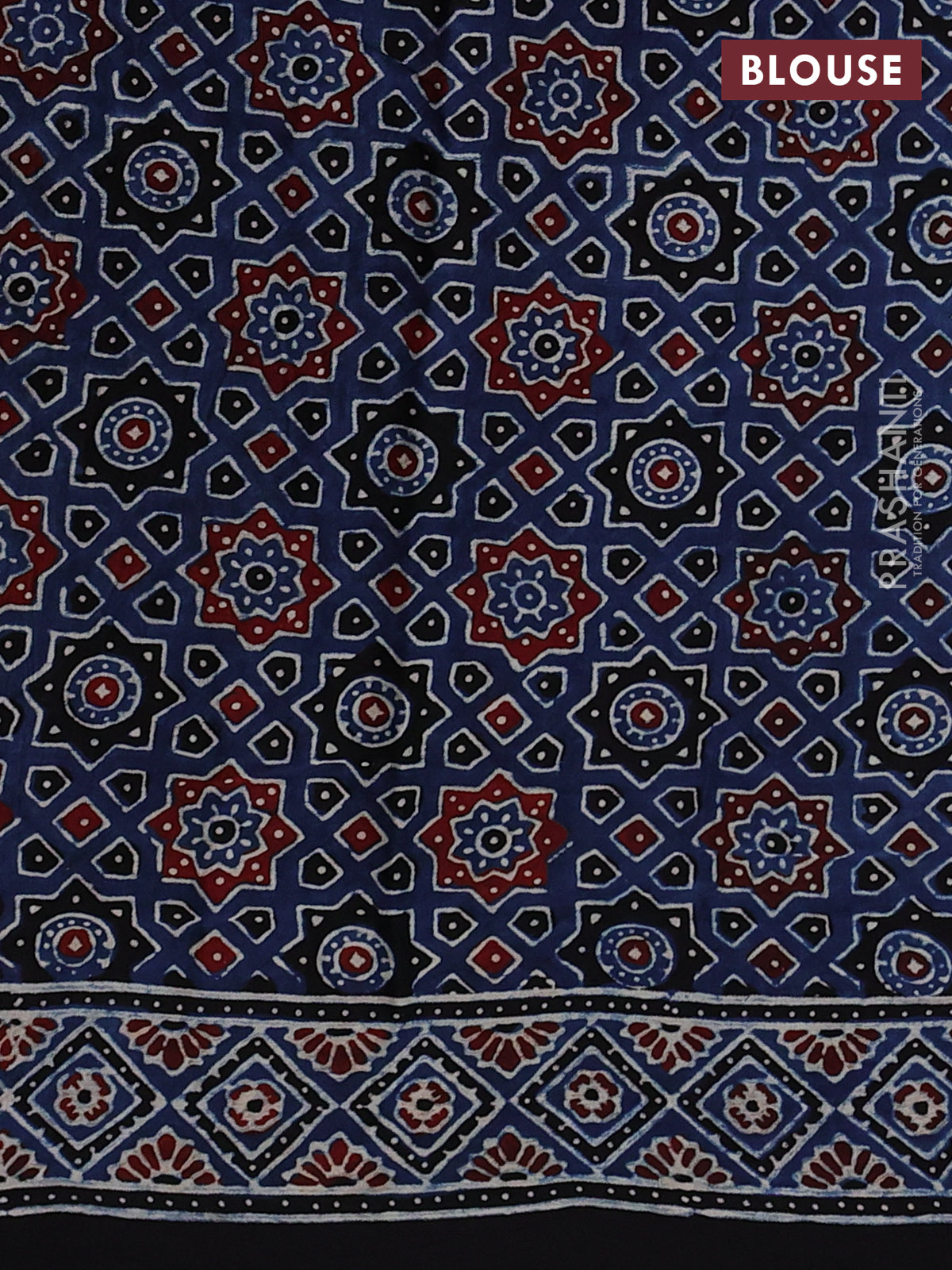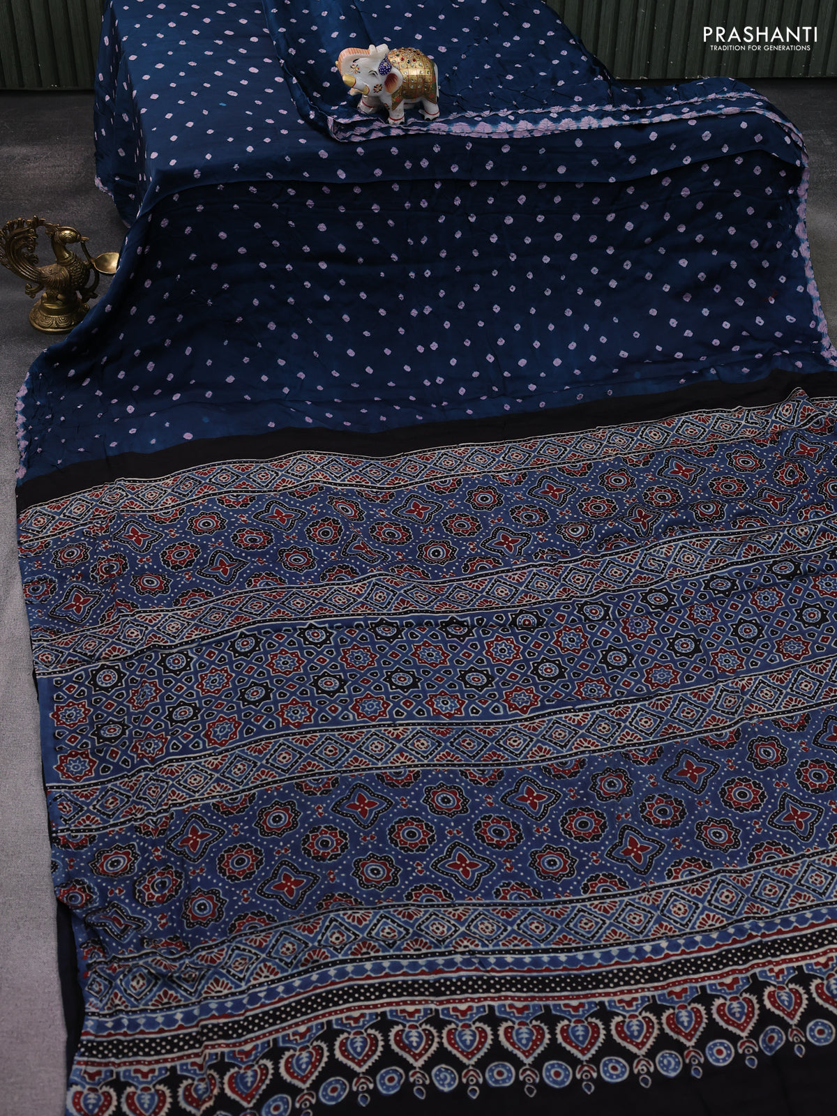 Modal silk saree peacock blue and blue with allover bandhani butta prints and ajrakh printed pallu & Blouse