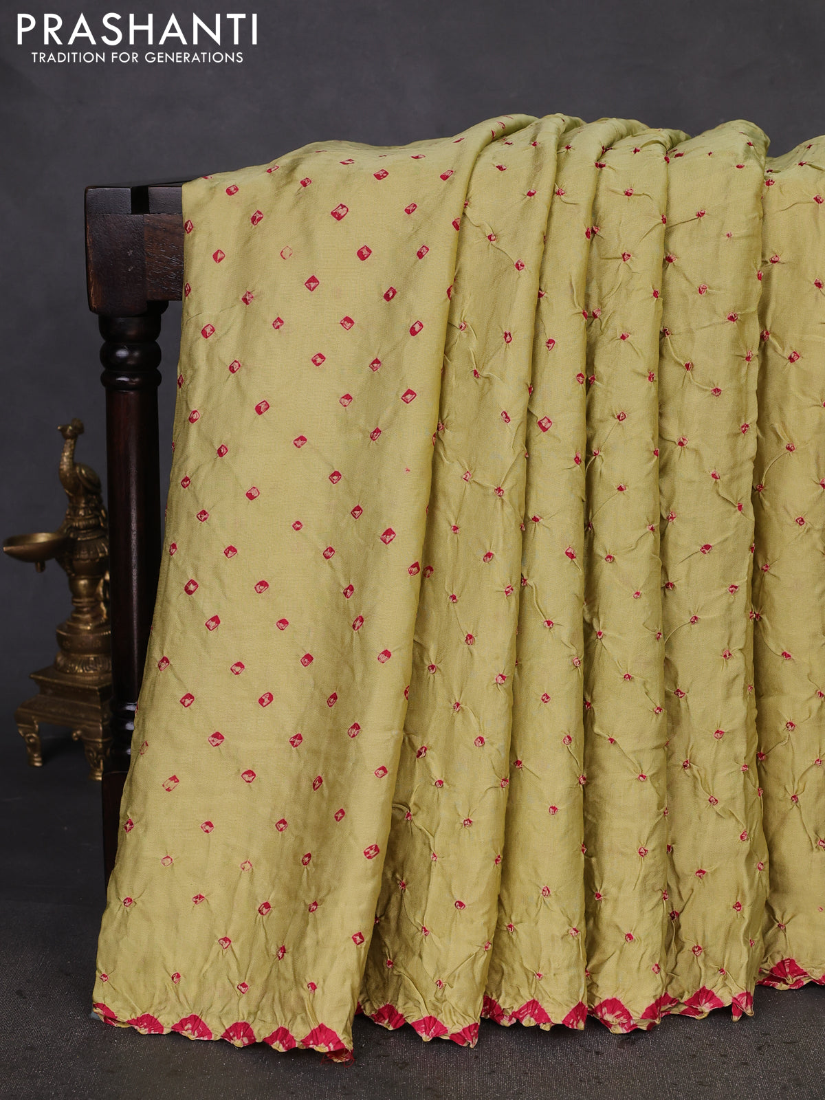 Modal silk saree pista green and black with allover bandhani butta prints and ajrakh printed pallu & Blouse