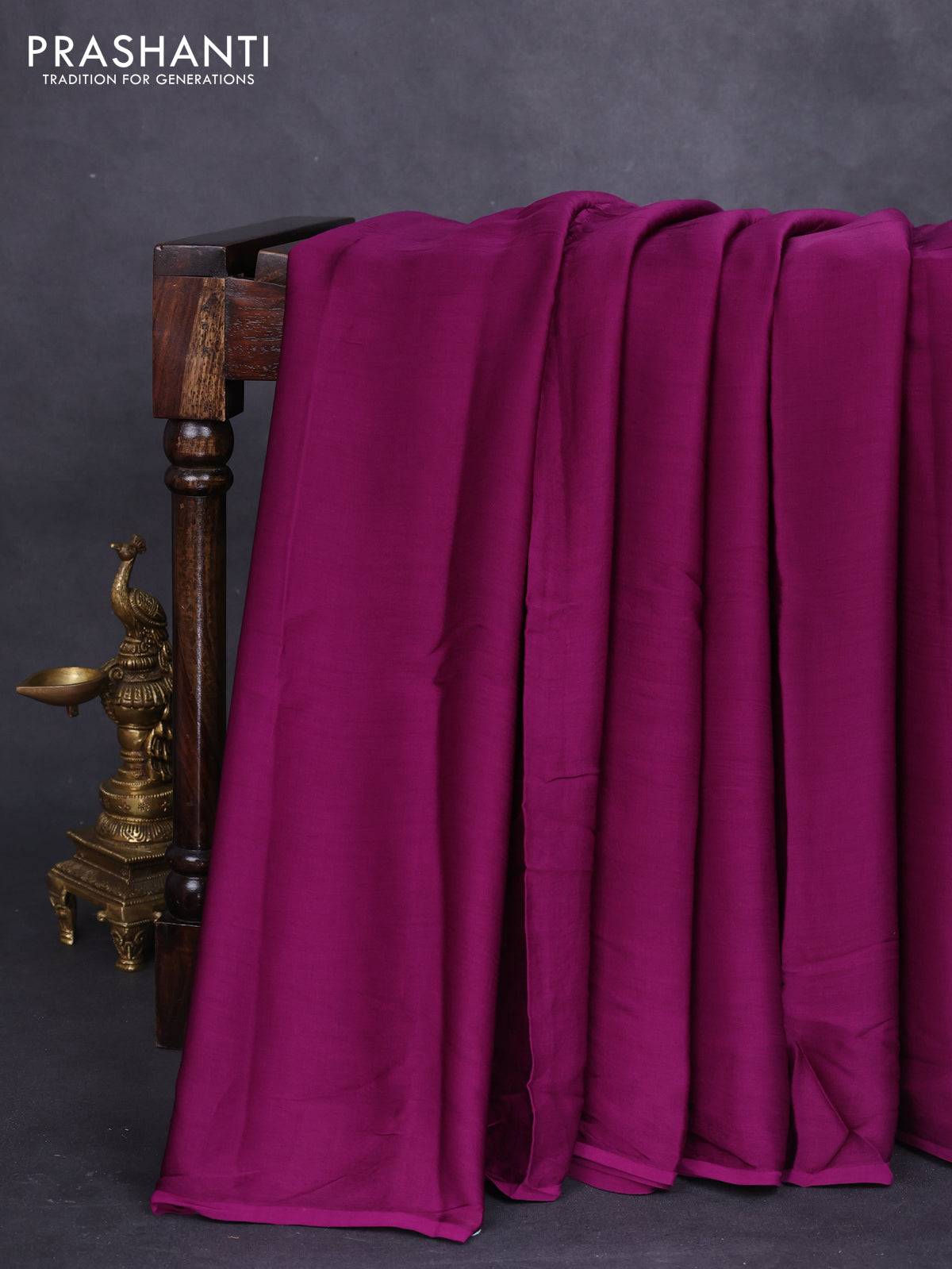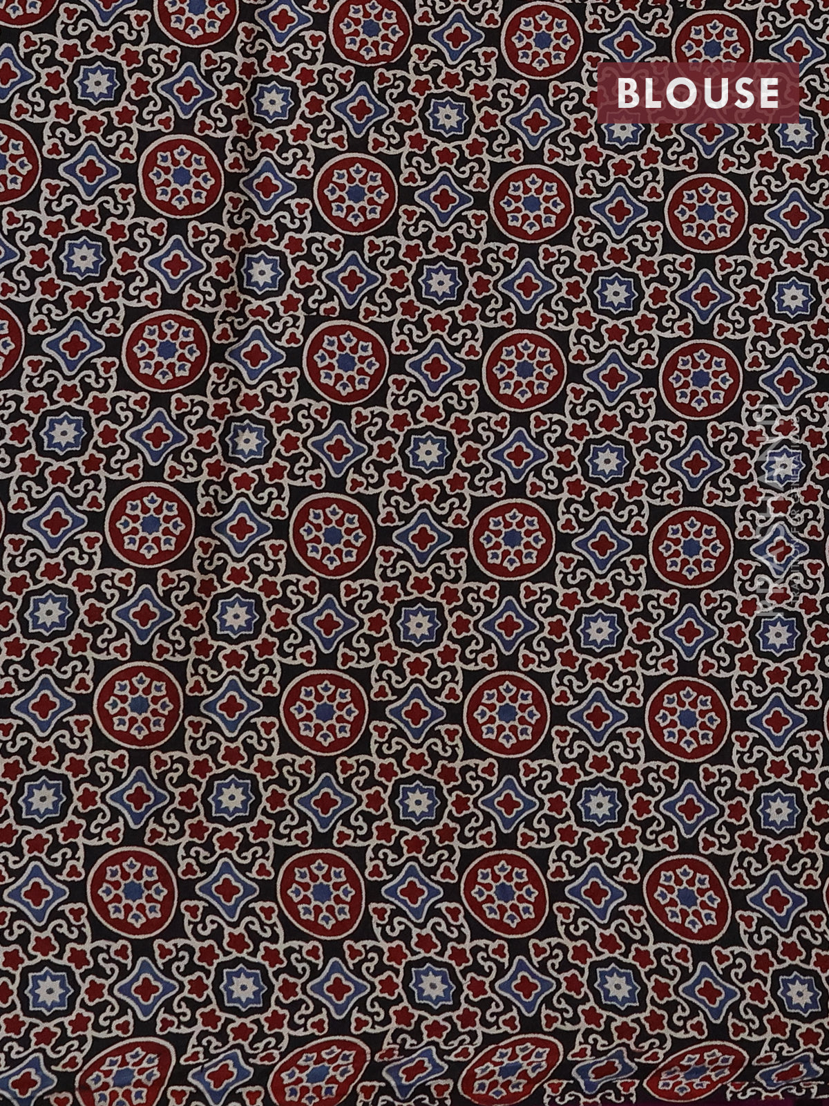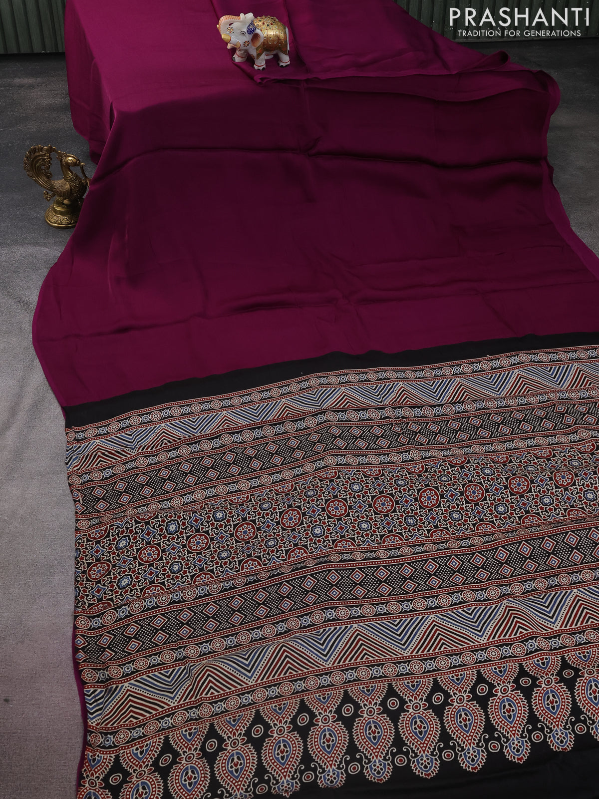 Modal silk saree purple and black with plain body and ajrakh printed pallu & blouse
