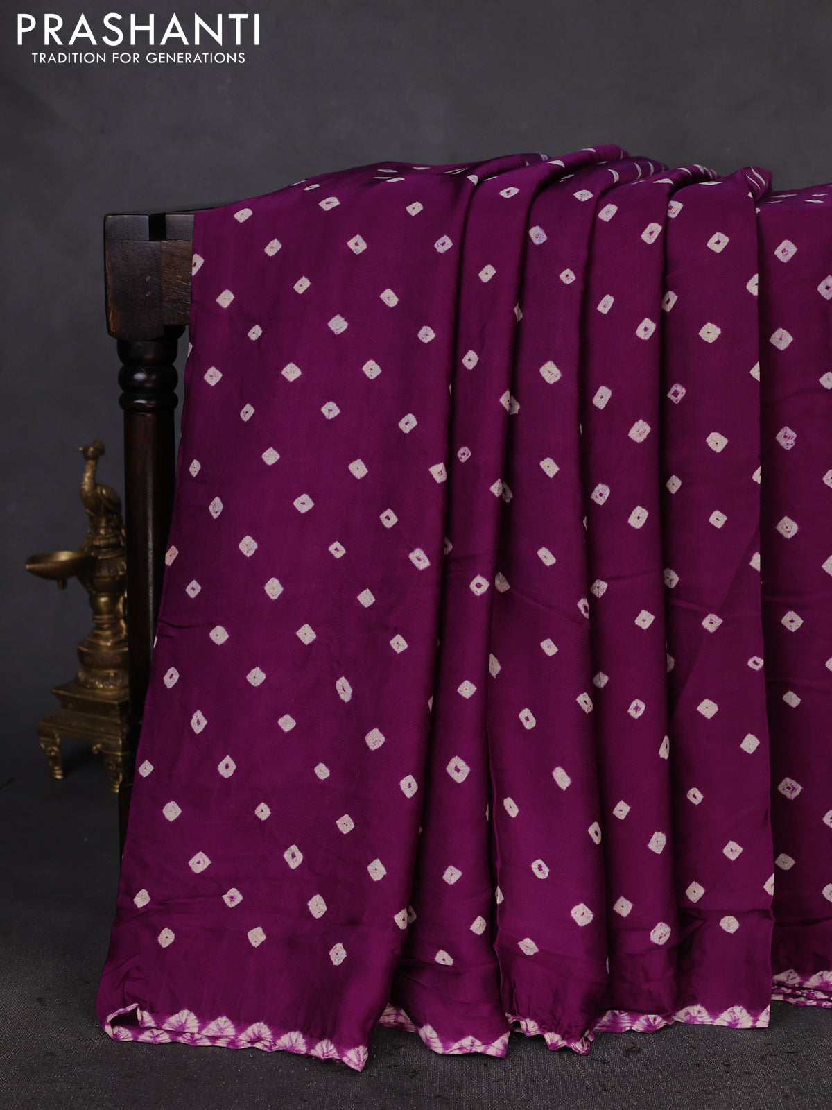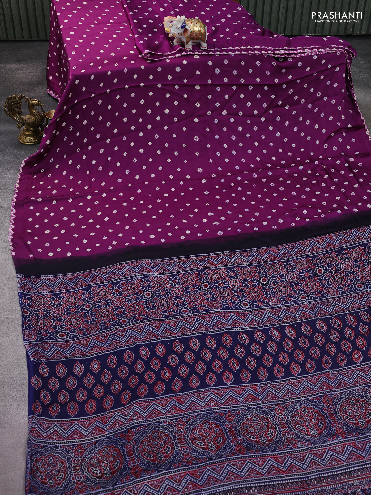 Modal silk saree purple and blue with allover bandhani butta prints and ajrakh printed pallu & Blouse