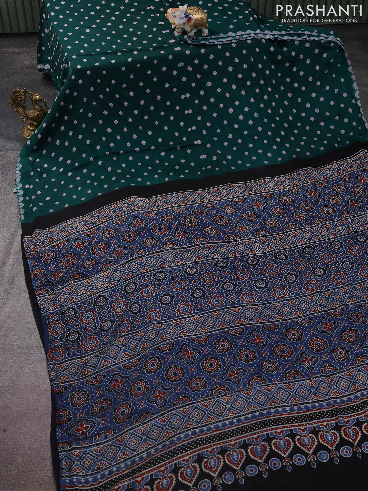 Modal silk saree teal green and black with allover bandhini prints and ajrakh printed pallu & blouse