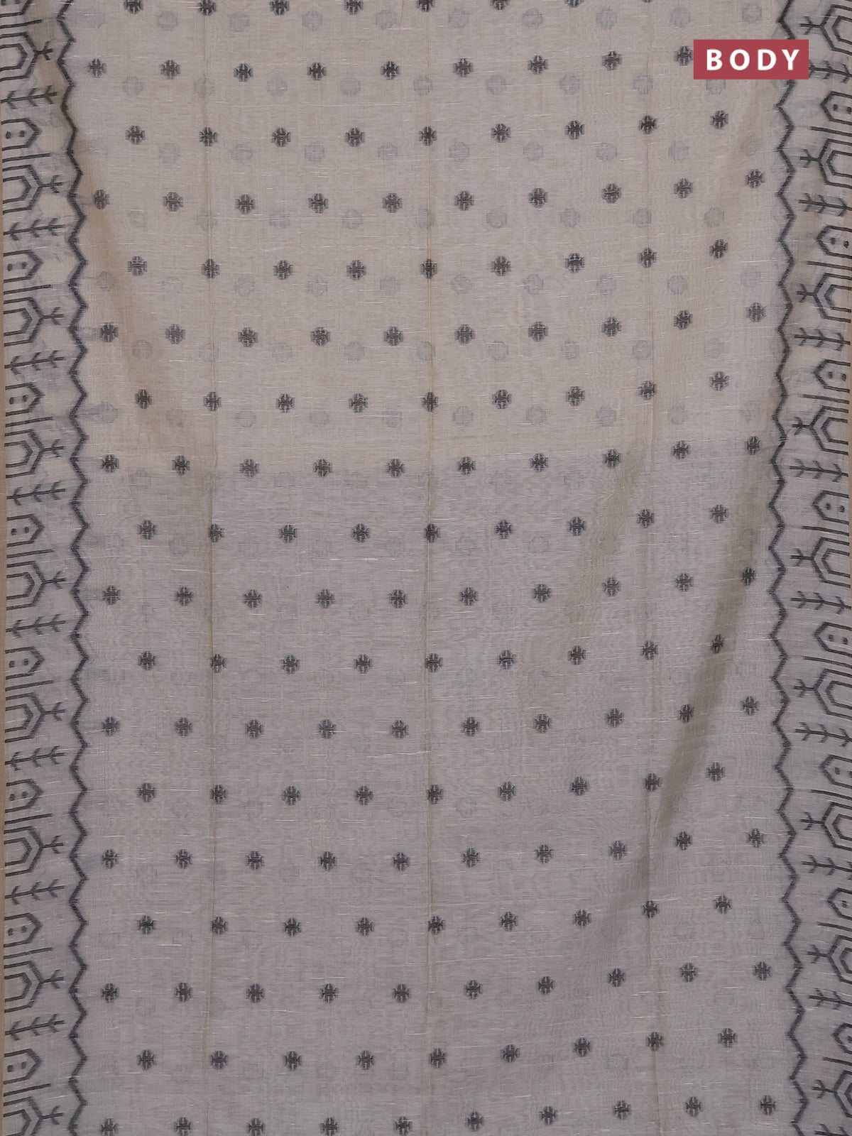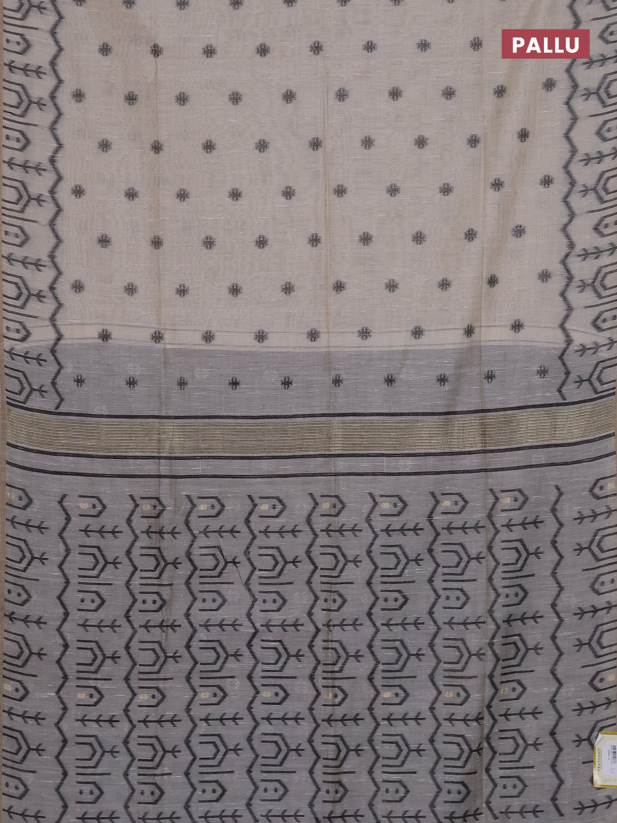 Munga cotton saree beige and black with thread woven buttas and weaving pallu