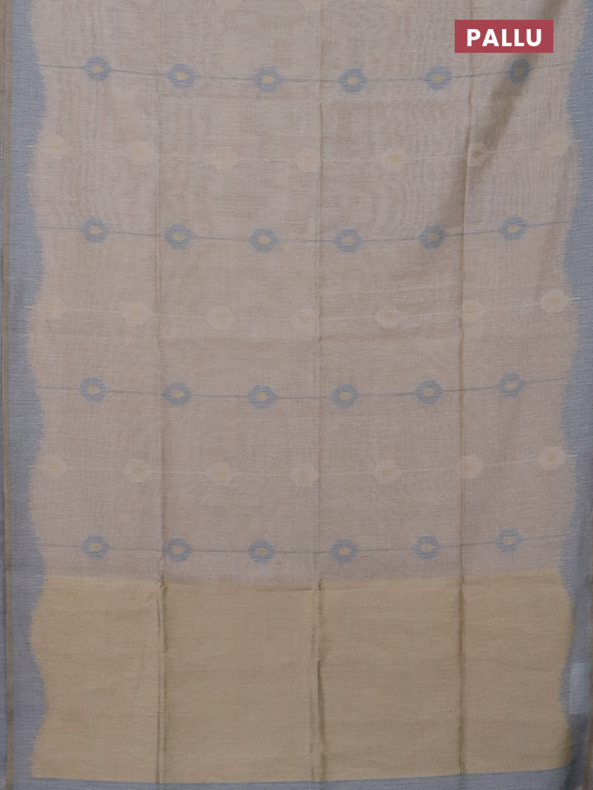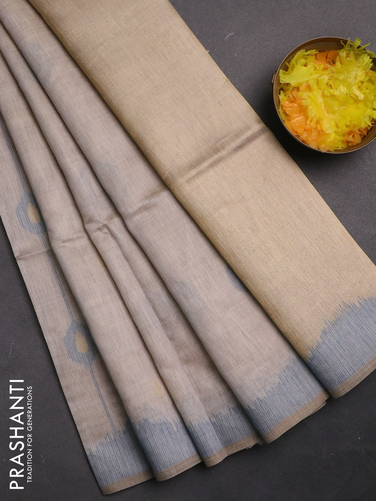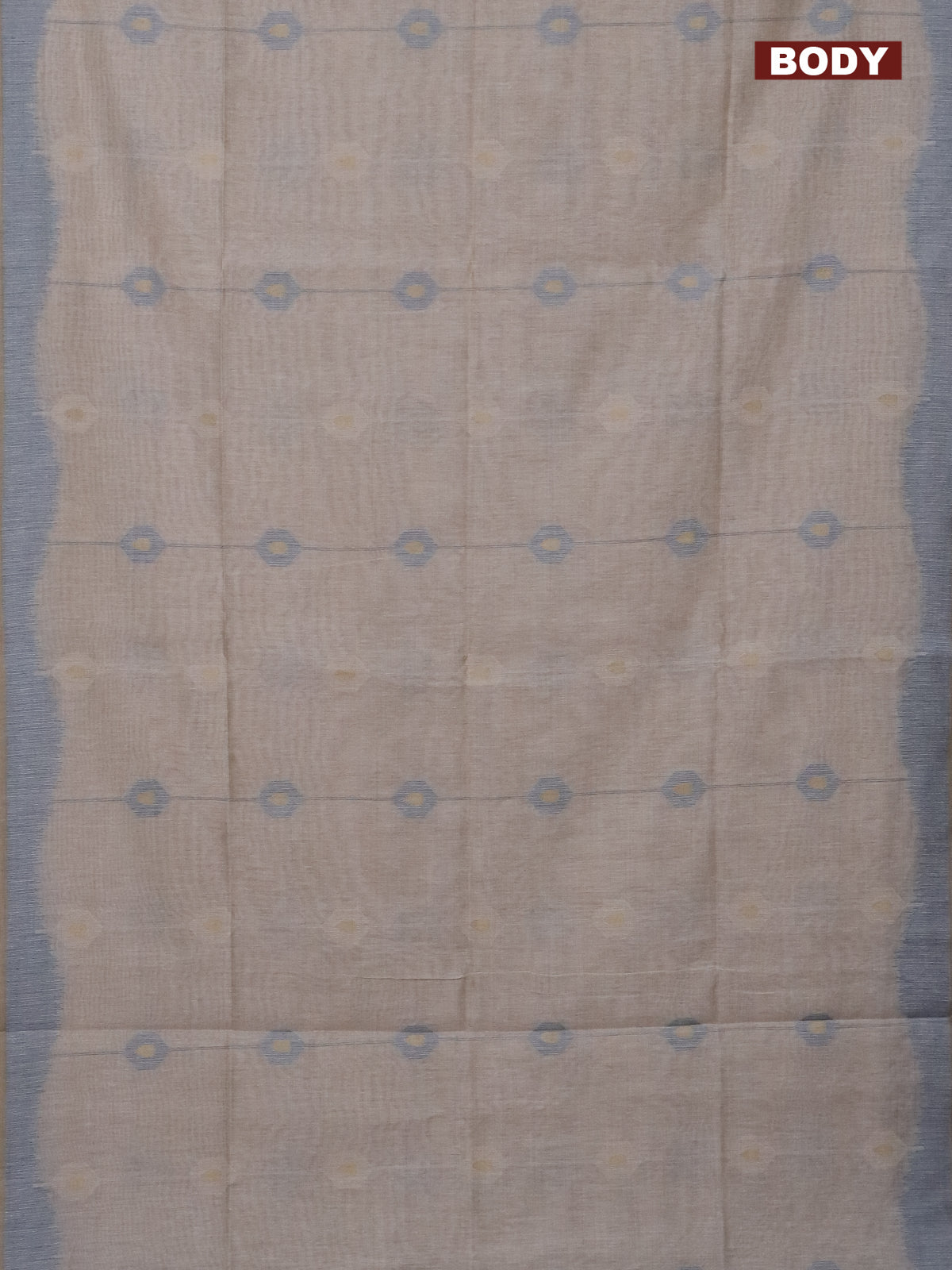 Munga cotton saree beige and peacock blue with thread & zari weaves and thread woven border